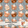 Bear Cocoa Stars Seamless Pattern – Cute Bear Mug Winter Digital Paper