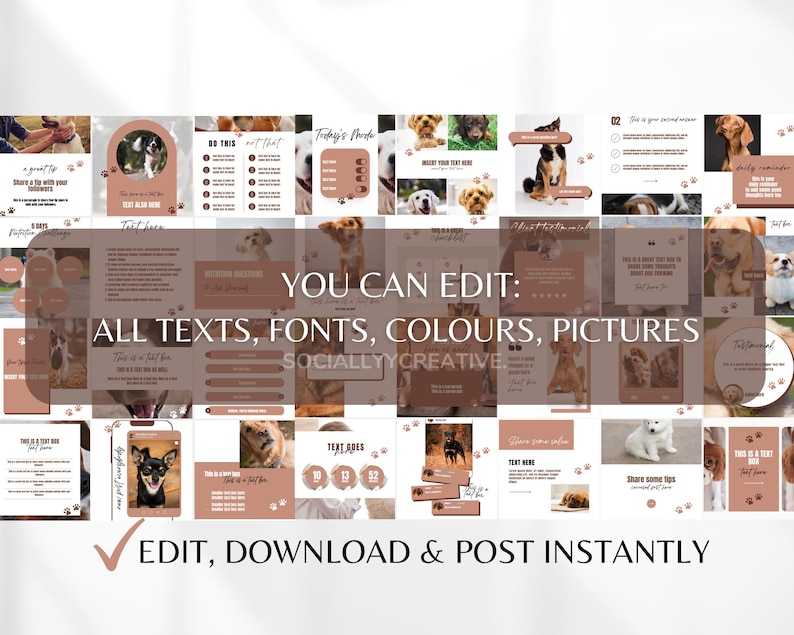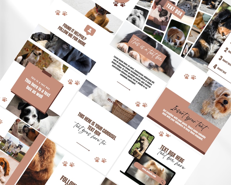 Dog Instagram Templates Brown Pet Social Media Dog Salon Instagram Dog Groomer Business Pet Canva Instagram Feed Editable Dog Instagram