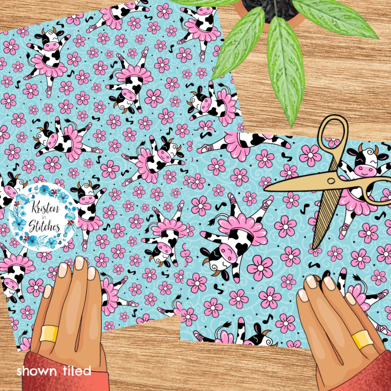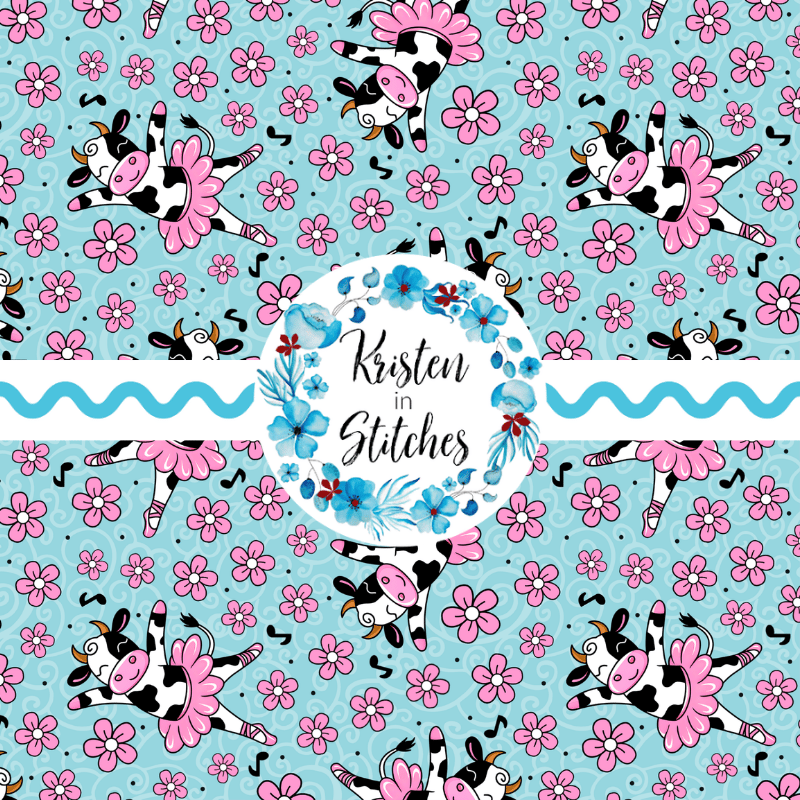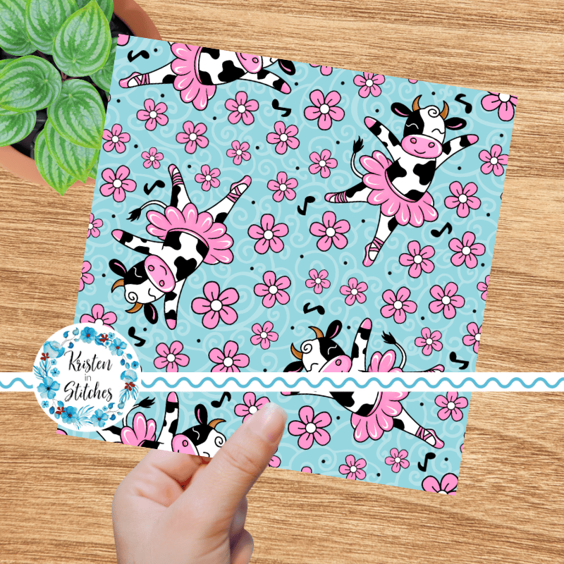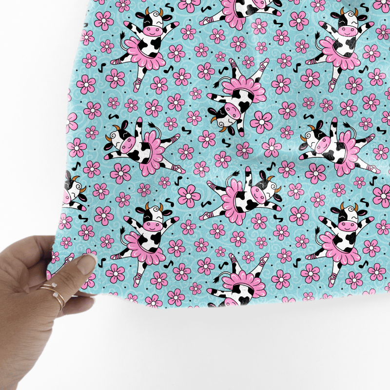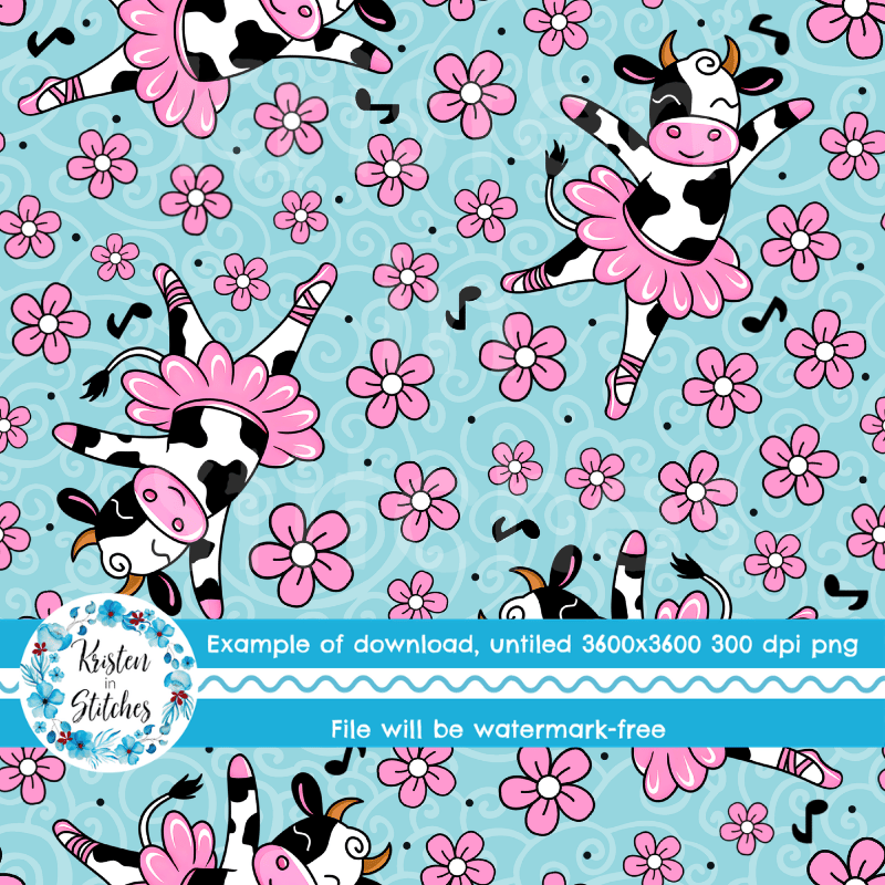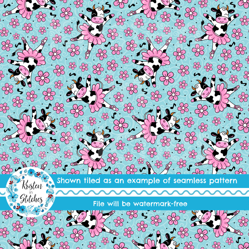 Ballerina Cows Floral Seamless Pattern, Dancing Tutus