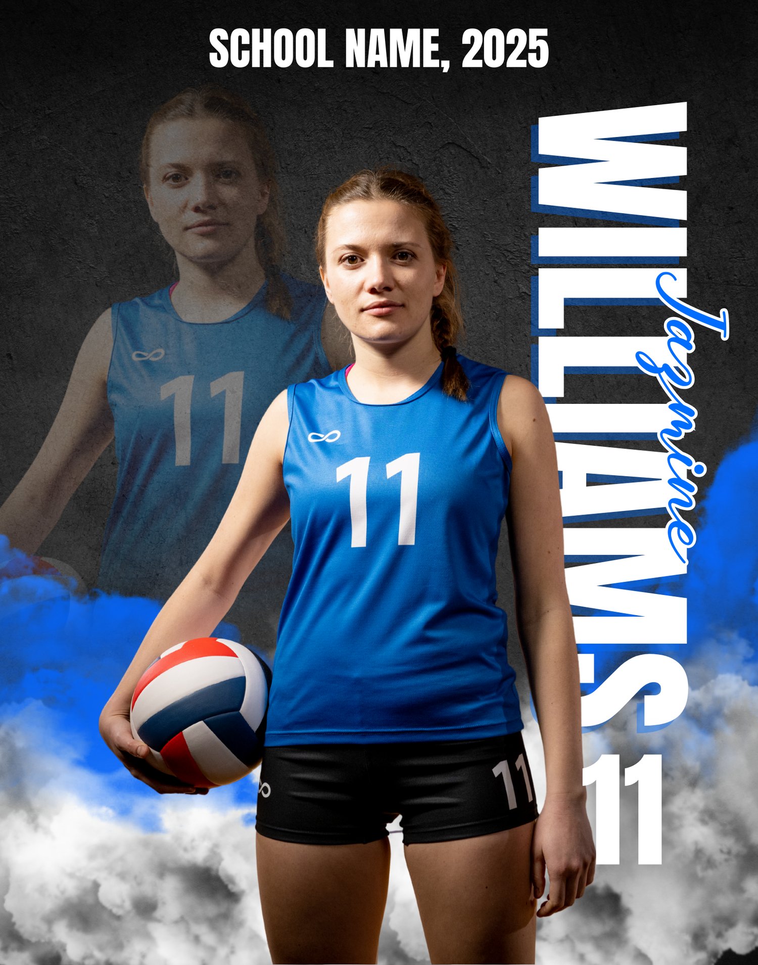 Get game-day ready with this modern, customizable volleyball poster template – perfect for players, teams, schools, or proud parents! Easily edit in Canva to add your own player photos, team name, jersey number, and event details. No design experience needed!