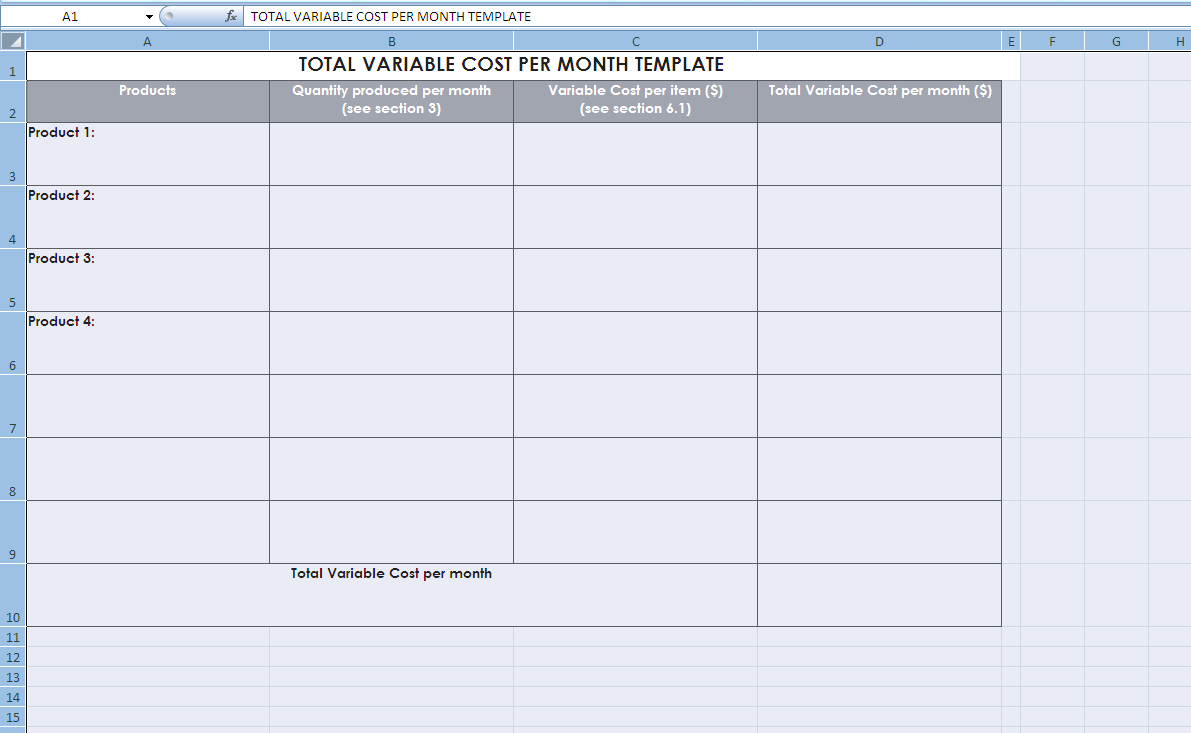 Total Variable Cost Per Month Template (SME Cost Tracking Tool)
