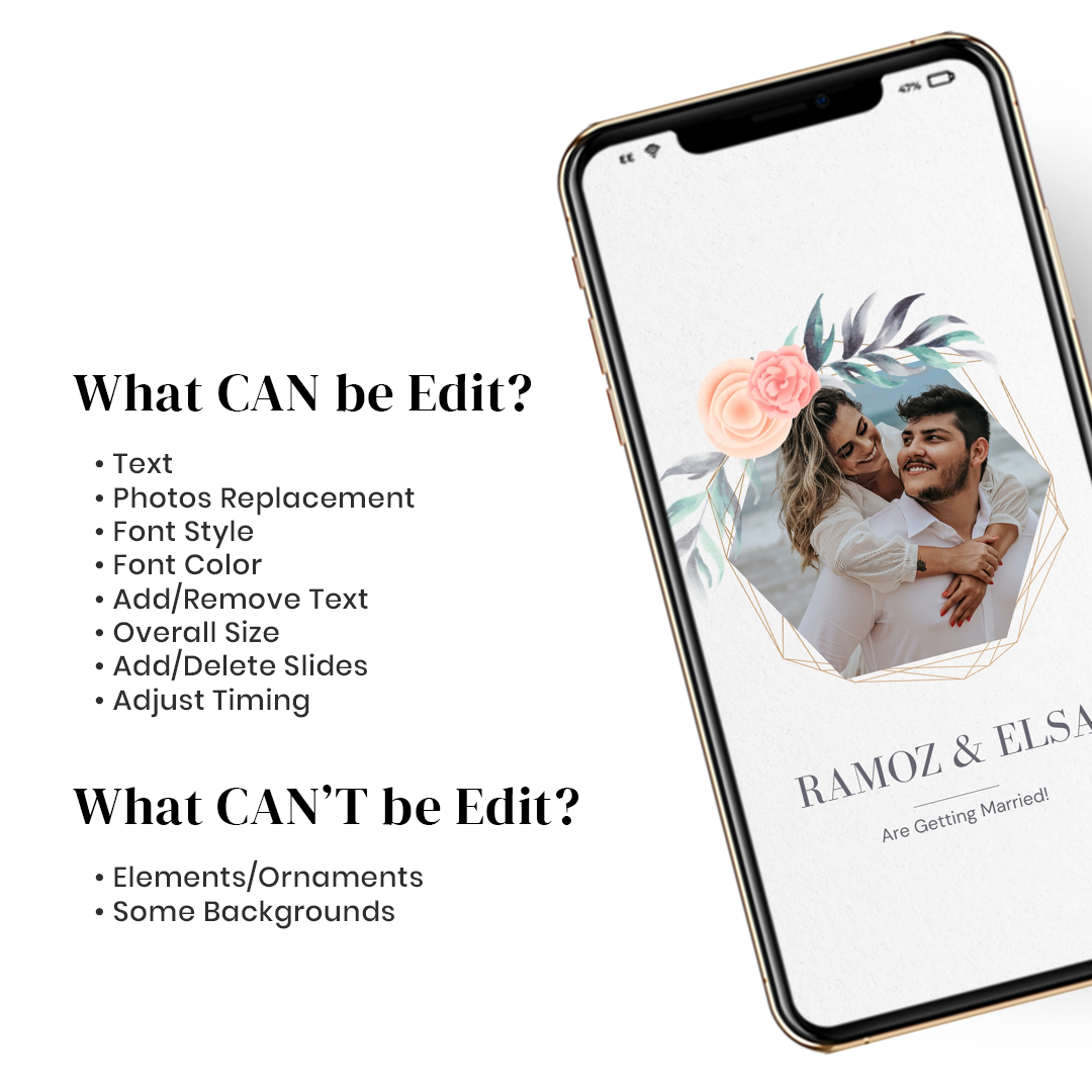 Invite your guests to your special event with a unique and modern touch using this special animated invitation. With the convenience of a video text message, it’s quick and easy to send. This template provides instant access without any need for installation.