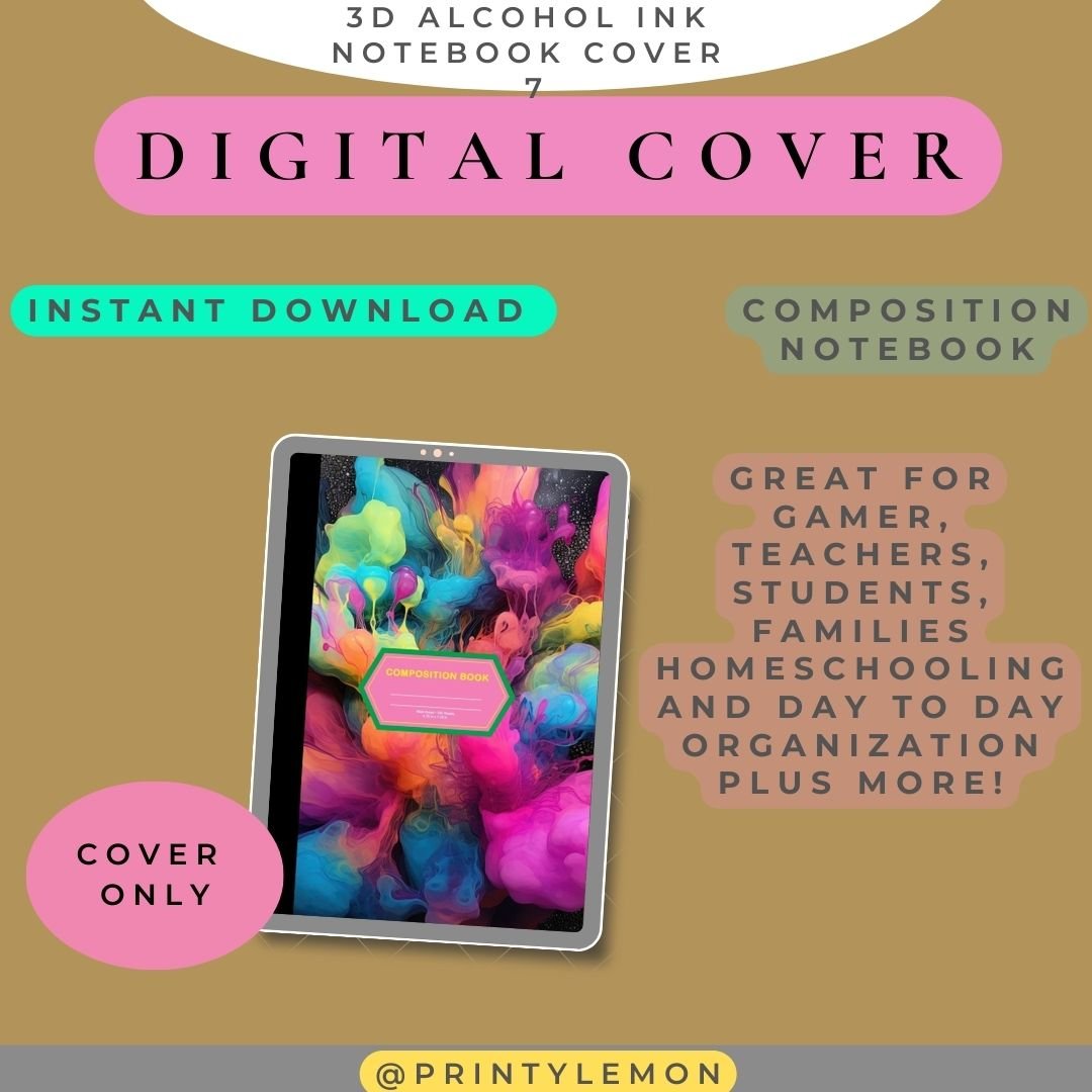7 Alcohol Ink 3D | Digital Cover Premium | Notebook Cover | GoodNotes | Composition Notebook | Printable