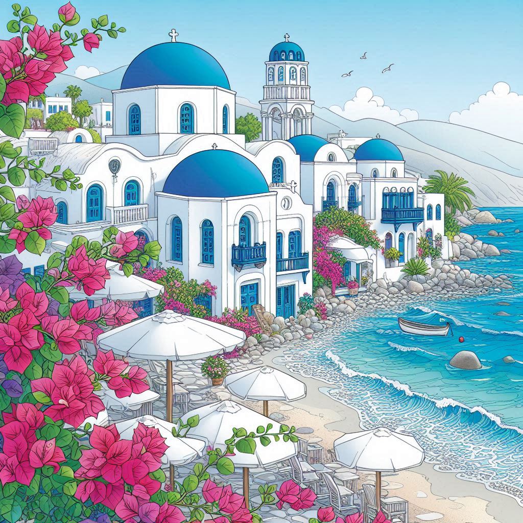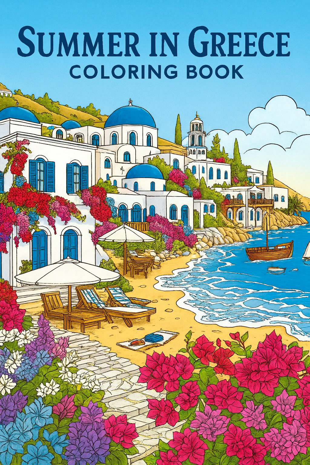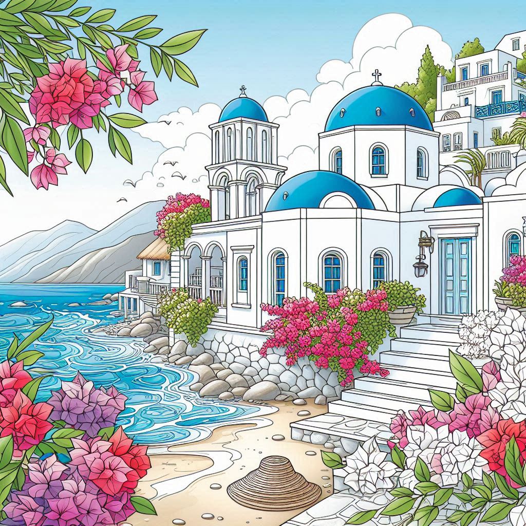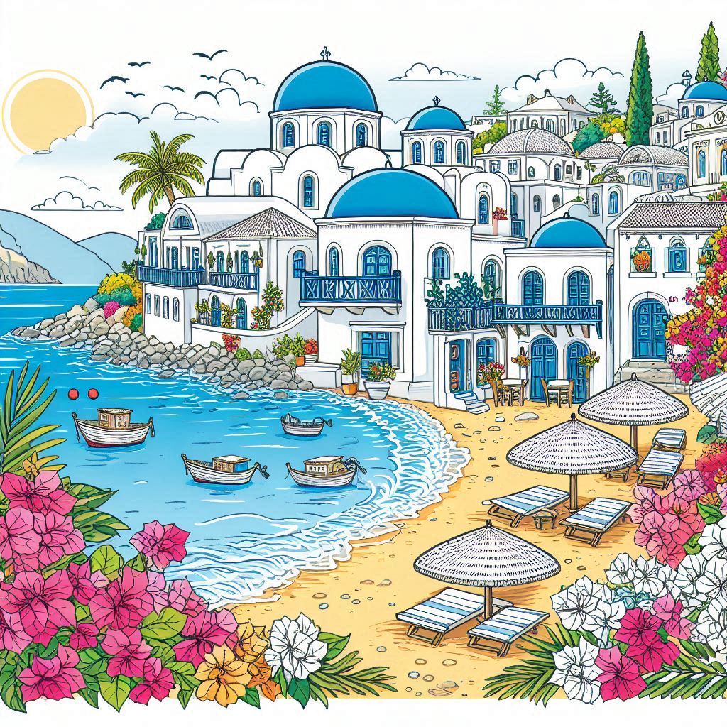 Summer in Greece, 70 designs, coloring ebook, digital printable product, instantly download