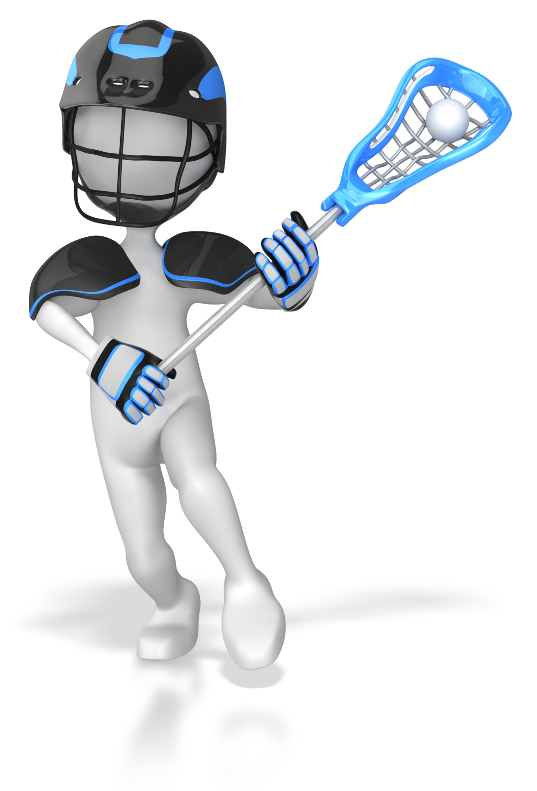 A stick figure lacrosse player is on the attack, wound up and ready to score.