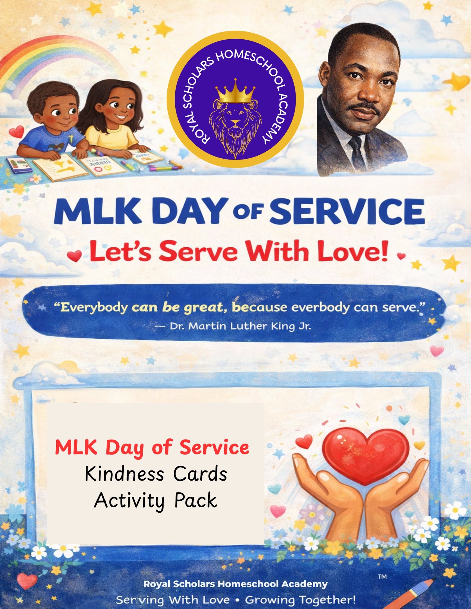 Help your children honor Dr. Martin Luther King Jr.’s legacy through meaningful service with this MLK Day of Service Activity for Kids. This printable, family-friendly resource guides students step-by-step through creating encouragement cards for nursing home residents, teaching kindness, empathy, and civic responsibility.
