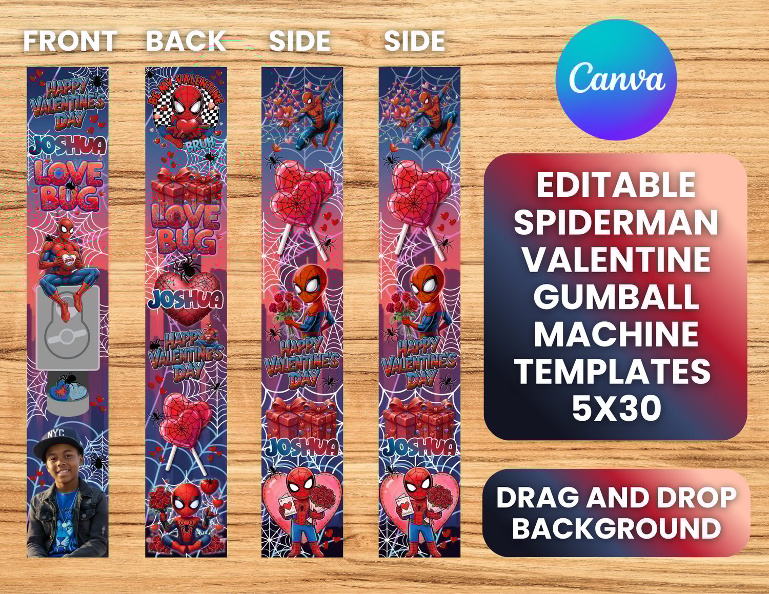 Editable Spiderman Valentine Gumball Machine Templates 5x30