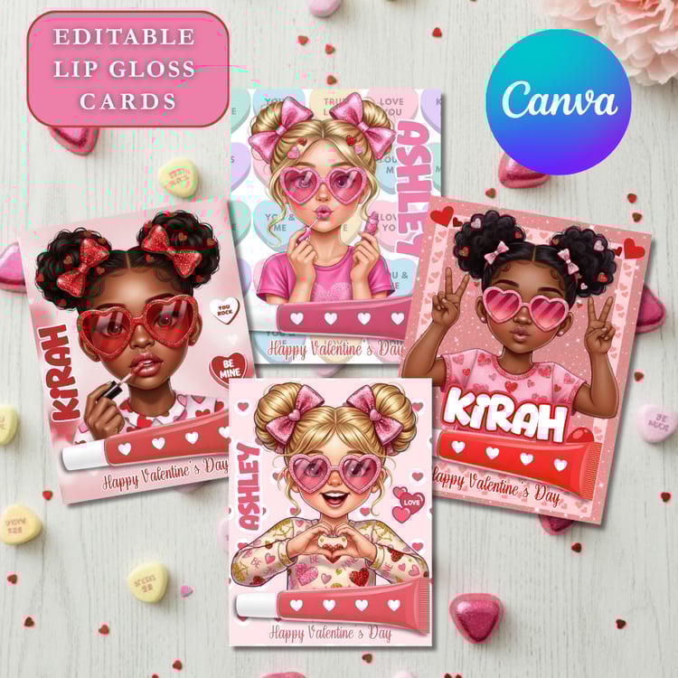- Front Panel Template: Includes the "Happy Valentine's Day" message, name field, and the gumball dispenser graphic.