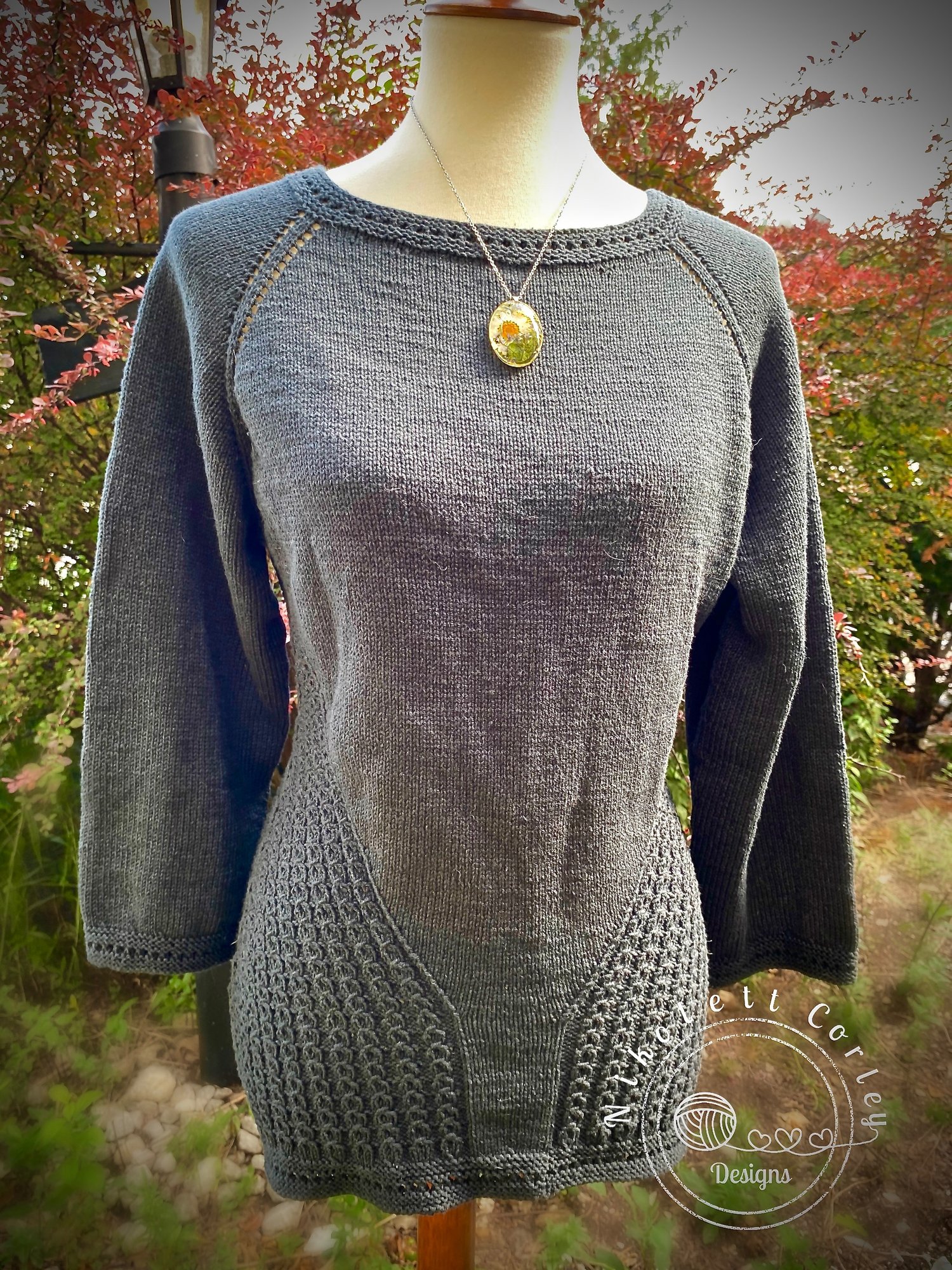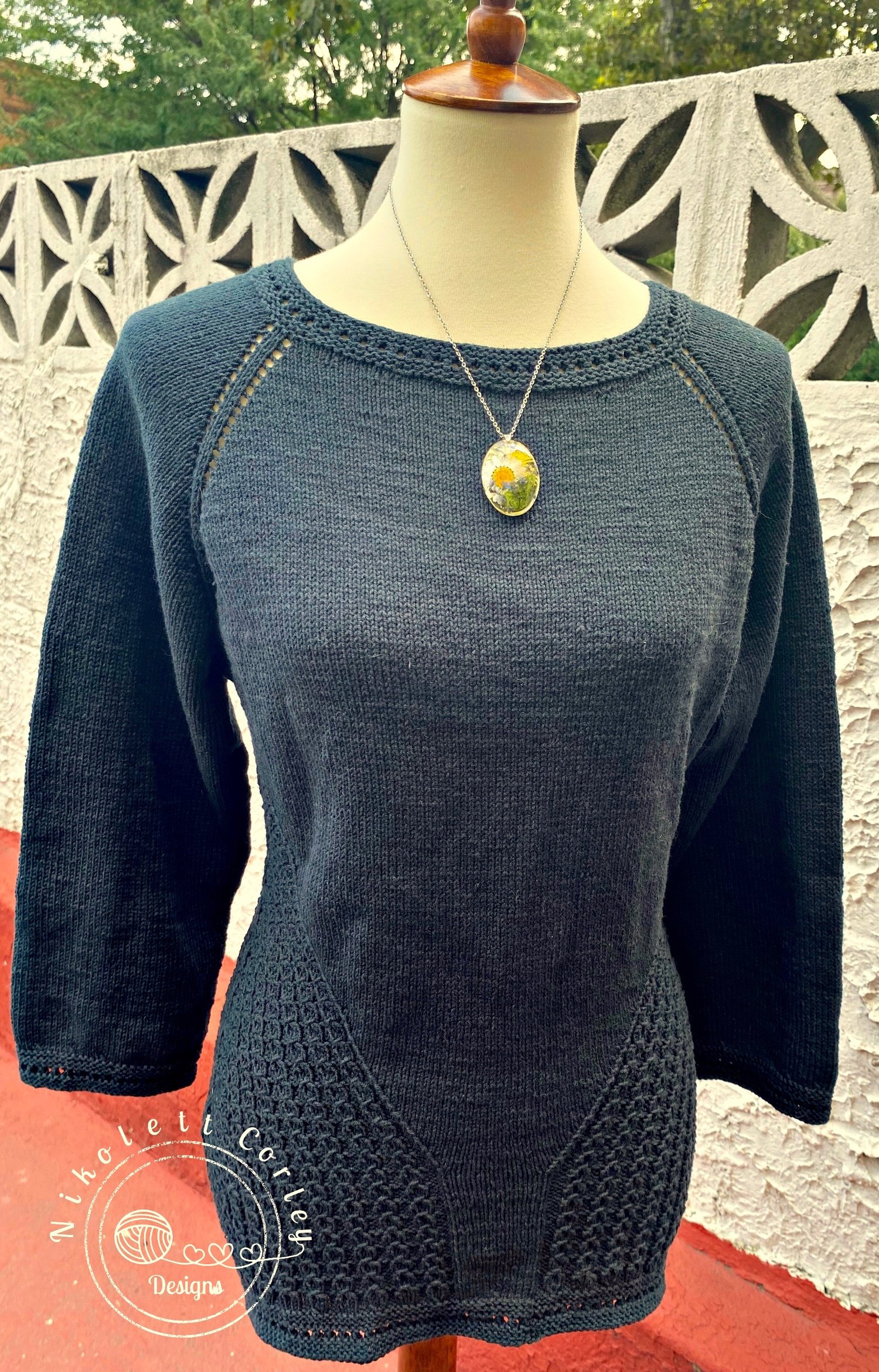 Meladora is a sophisticated, low-key, textured pullover, worked seamlessly from the top down.