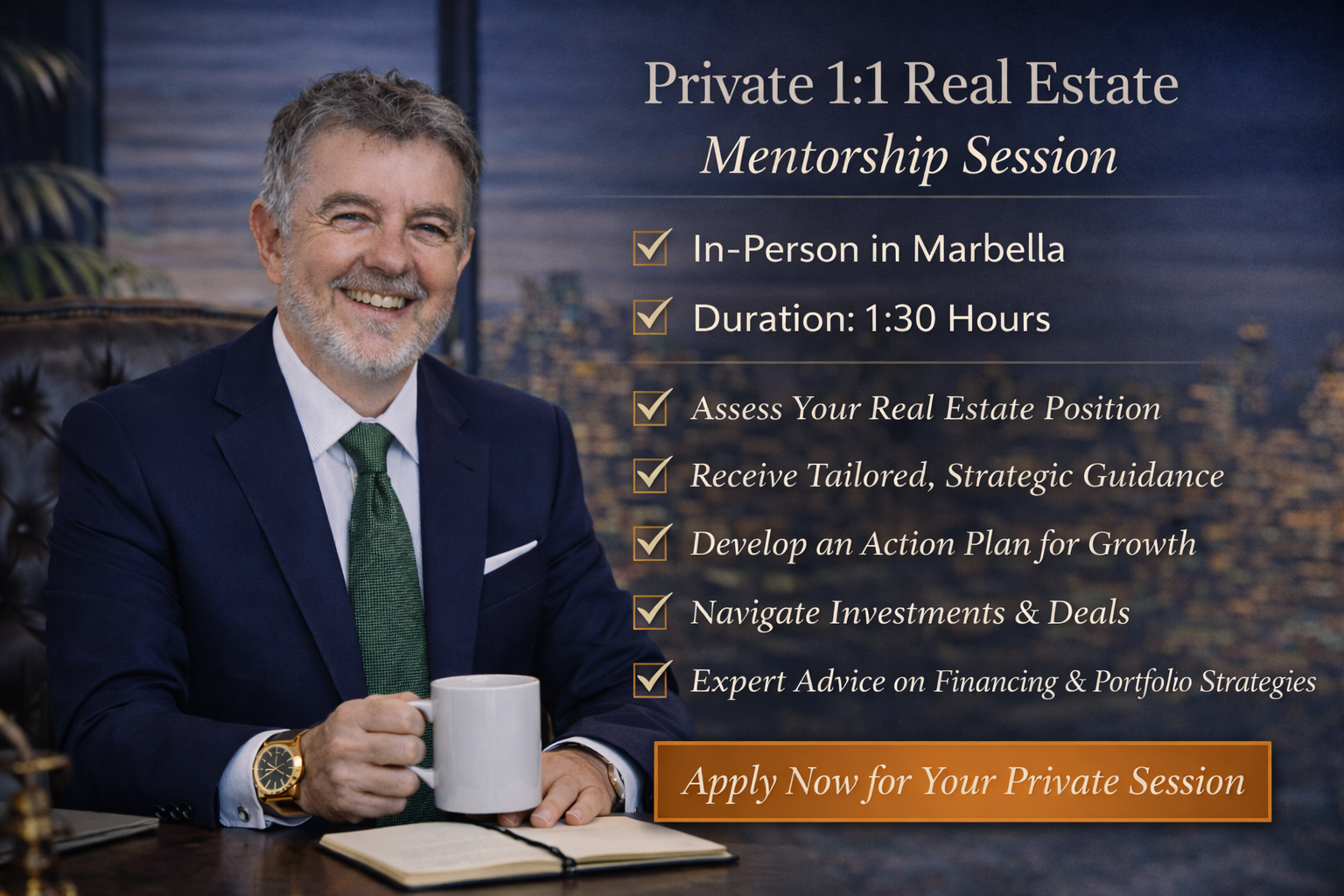 The mentorship is conducted through a private 1:1 in-person meeting in Marbella, ensuring complete confidentiality, focused attention, and a highly personalized experience.