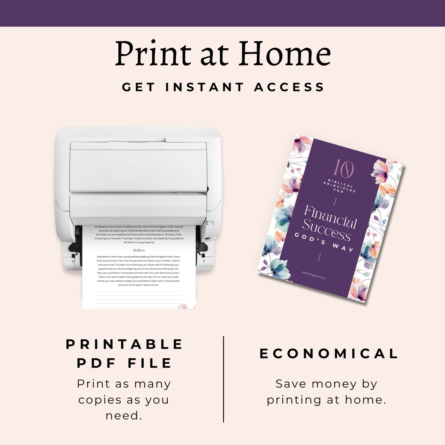 This faith-filled journal walks you through ten timeless biblical principles and helps you apply each one with Scripture-anchored reflections and practical prompts. It’s a gentle, guided path to financial peace, clarity, and faithful action.