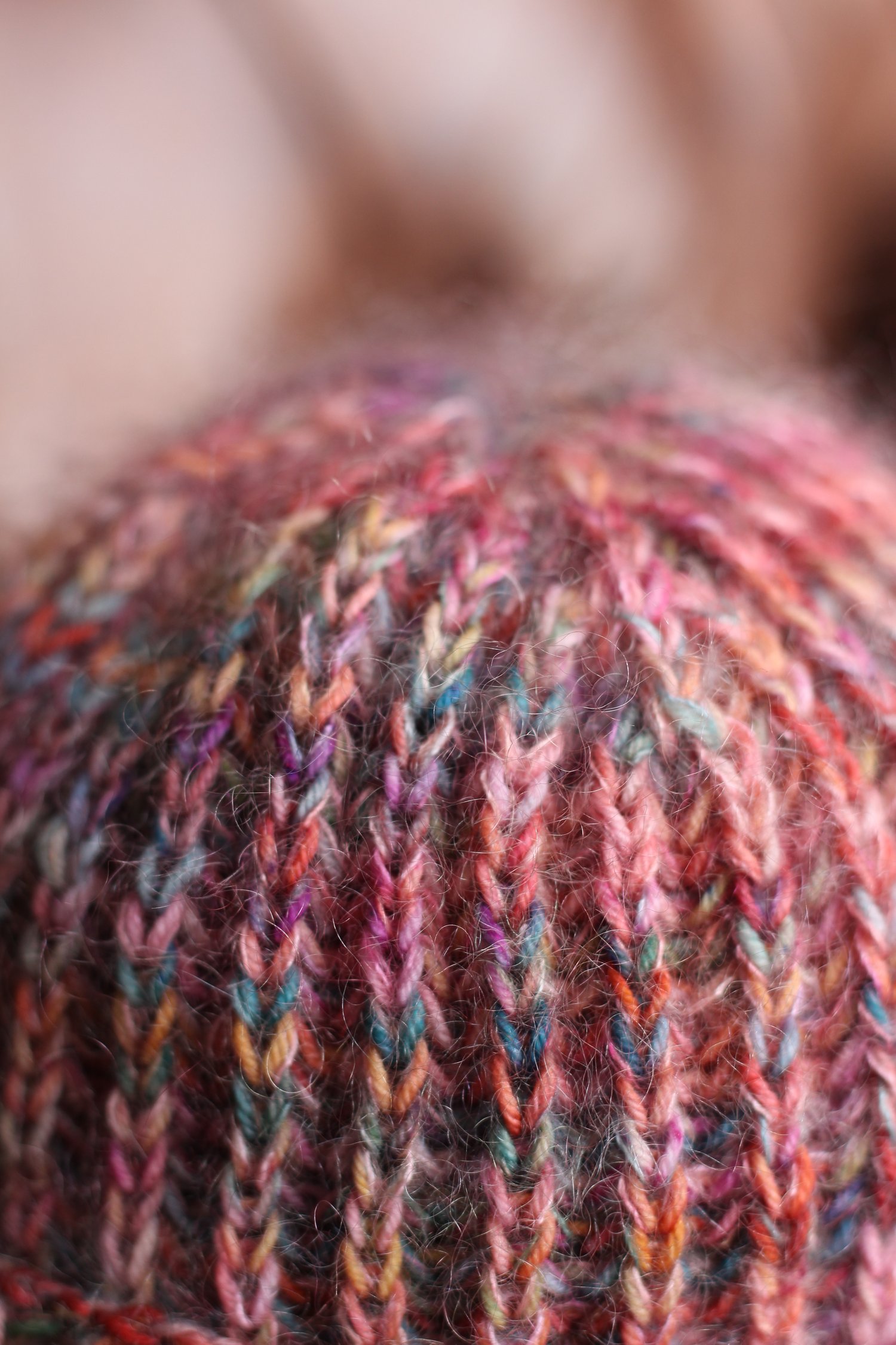 A simple hat that is quick and fun to knit, the Sophie Lowe Beanie is a great beginner brioche project. The pattern provides clear instructions for all brioche techniques used, and the brioche decreases used in the crown shaping add a subtle yet interesting design element. Adding to the luxuriousness is the mohair held double with the fingering weight yarn—talk about some serious fluff-factor!