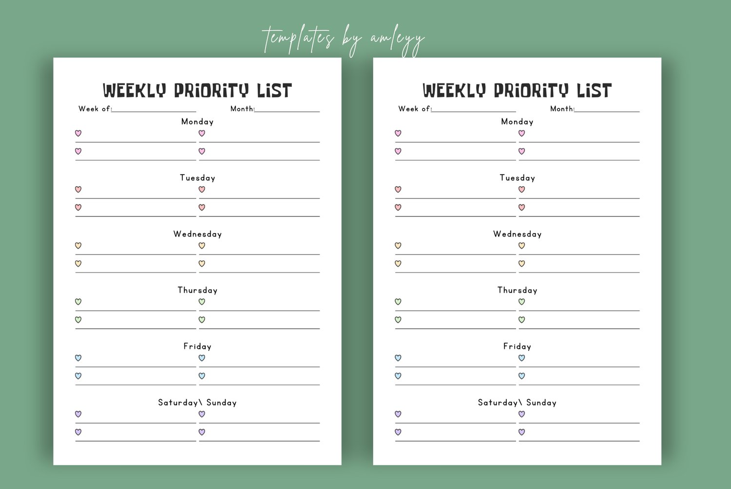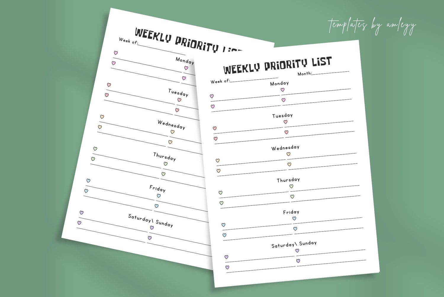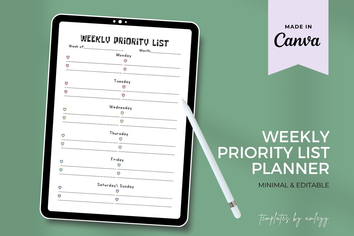 Weekly Priority List Planner Template | Minimalist Productivity Planner | Editable Canva Template | Instant Digital Download