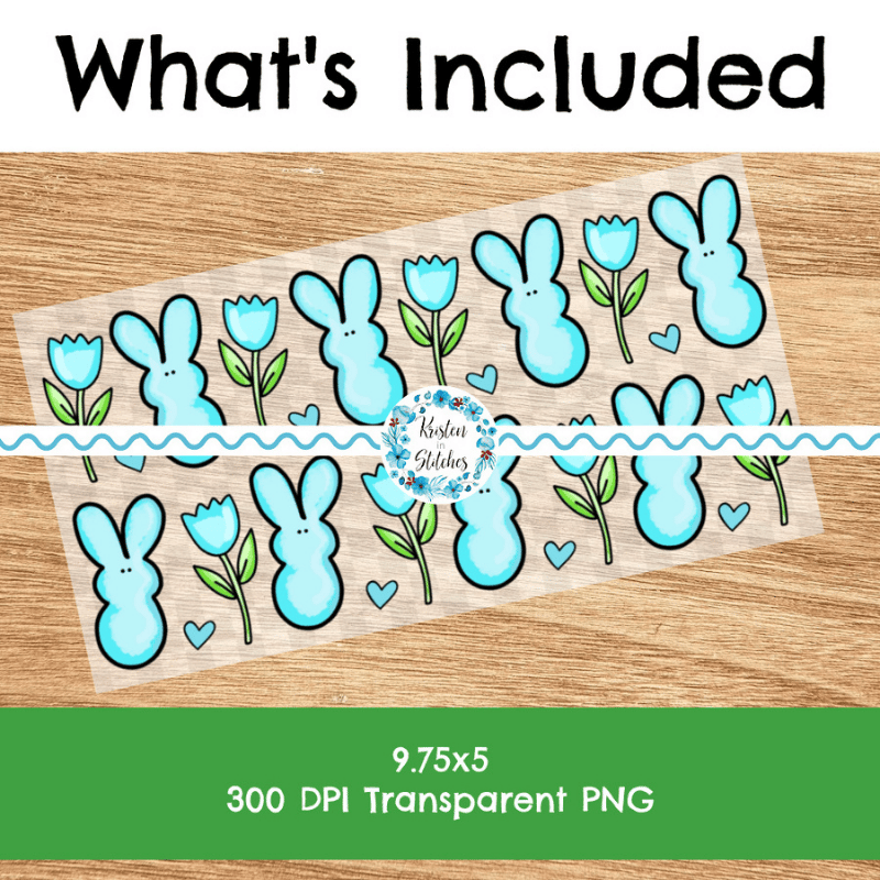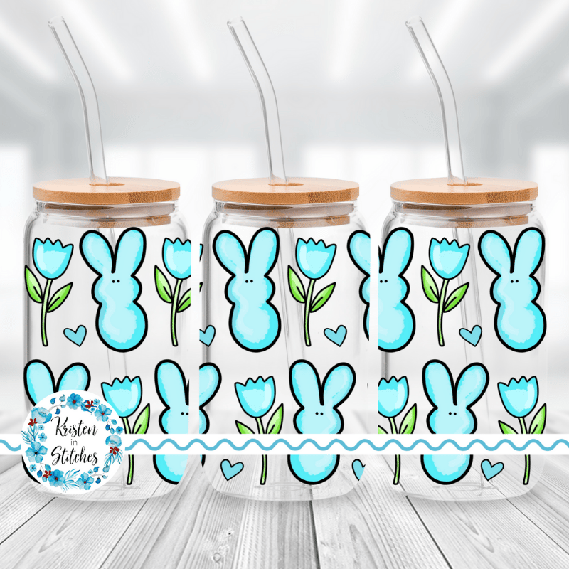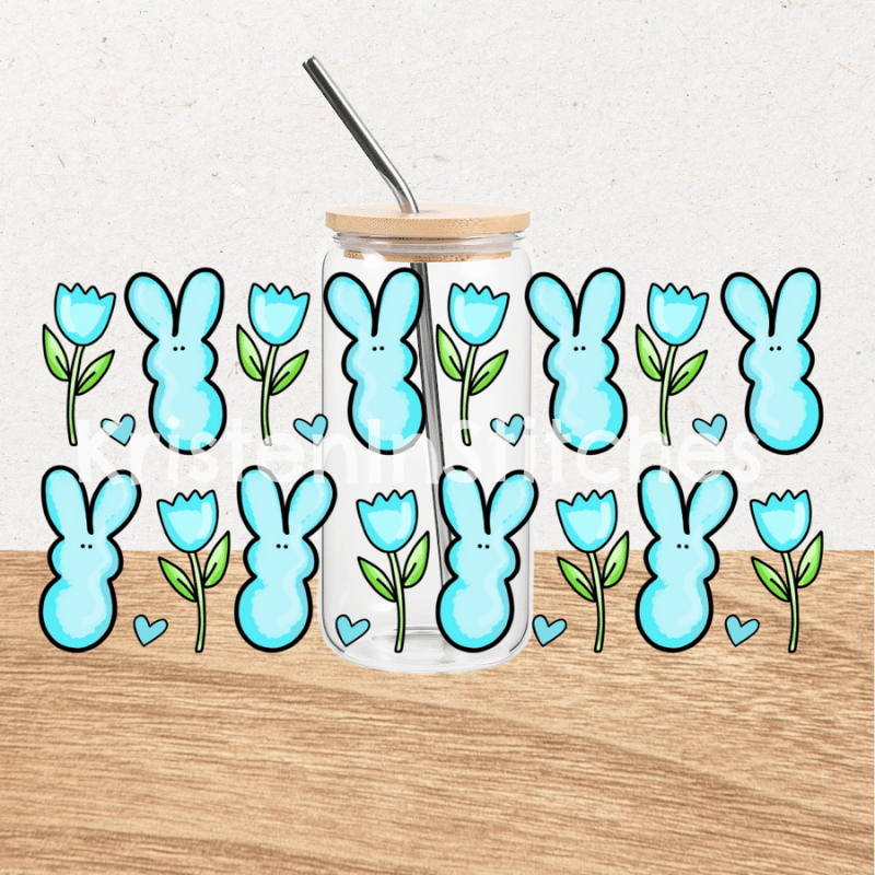 Spring Bunny Glass Can Wrap Transparent PNG, Blue Easter Bunnies Flowers Hearts