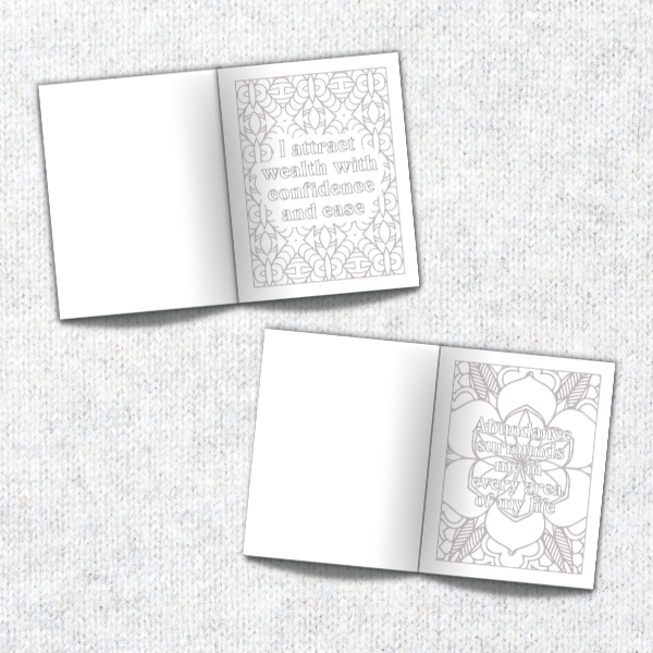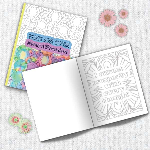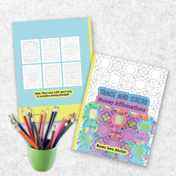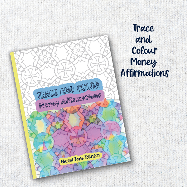 Boost your money mindset, unwind and relax while you first trace, then colour, the patterned backgrounds and text affirmations.