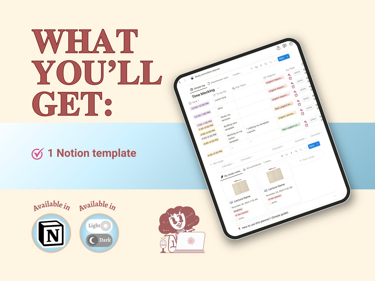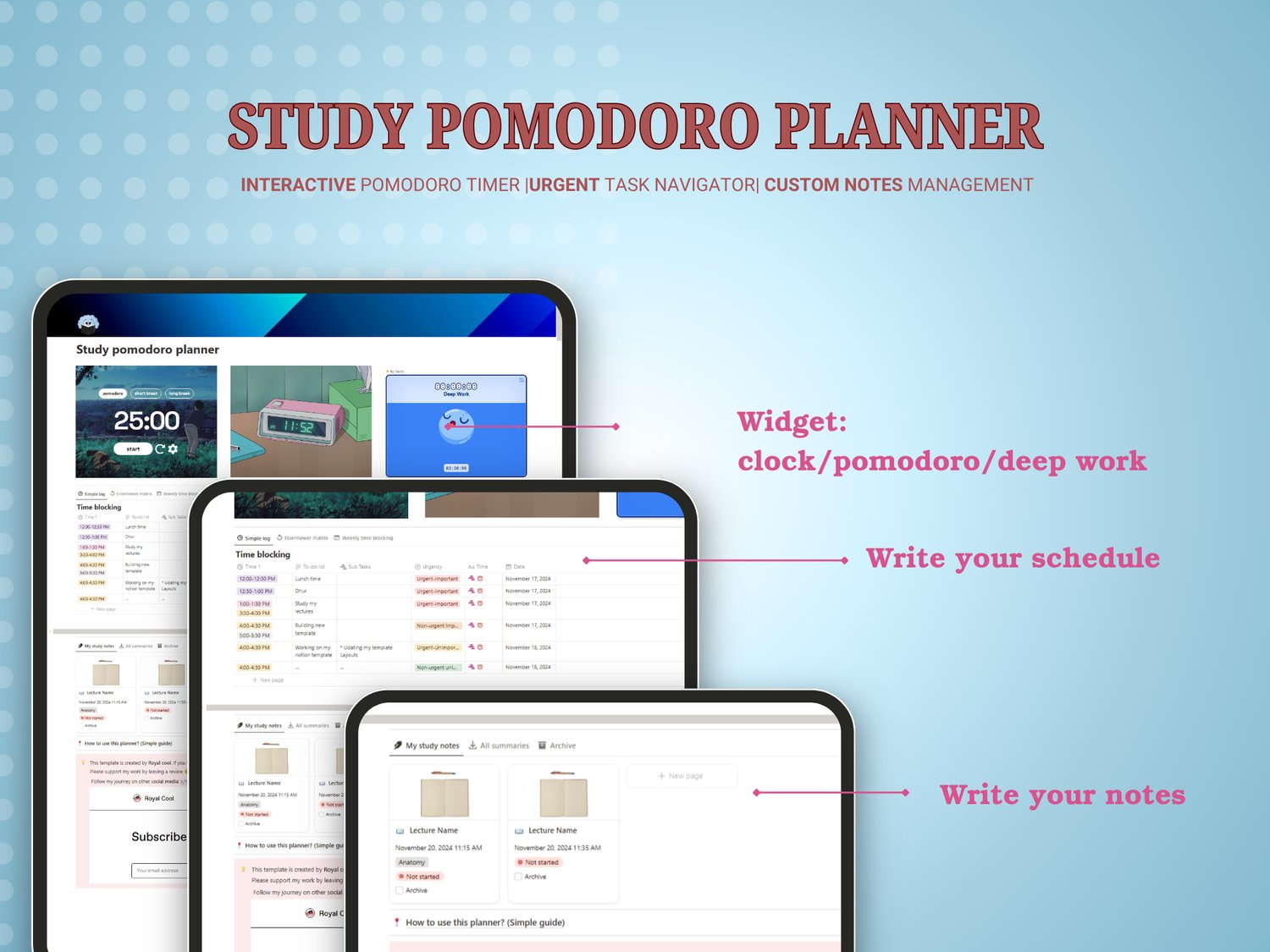 Tags: Study Planner, Pomodoro Technique, Time Management, Notion Template, Student Productivity, Academic Success.
