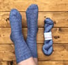 Hand knit socks are designed to be slightly smaller than the foot length to give a small amount of negative ease. This means that they will hug the foot and leg and stay in place. The sizes given are a ‘to fit’ size. The actual socks will be slightly smaller to allow a little stretch for a snug fit.