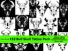 Embrace the raw power and mystique of the Bull Skull with our Tattoo Pack. This captivating collection showcases intricately designed Bull Skull tattoos with transparent backgrounds and alpha maps. Whether you seek to channel strength, resilience, or a touch of the wild, these versatile designs seamlessly integrate into your creative projects or personal style. Unleash your inner spirit with our Bull Skull Tattoo Pack.
