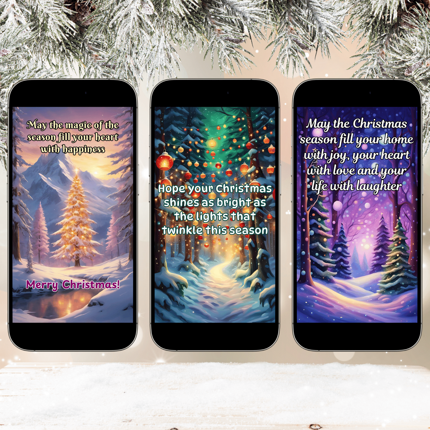Each wallpaper is optimized for phone screens (1080 x 1920 px) and provided in high-quality PNG format, making it easy to use as a phone background or to share directly on social media platforms like Instagram and Facebook. Perfect for festive posts, stories, or just keeping the holiday spirit alive on your phone!