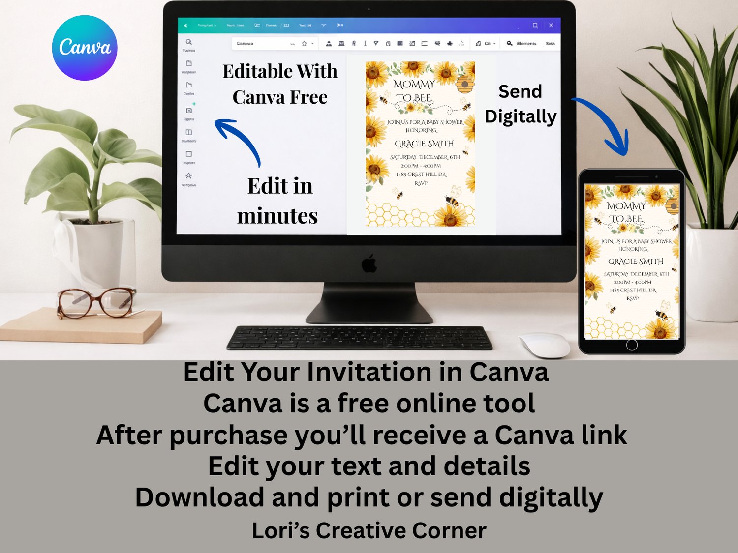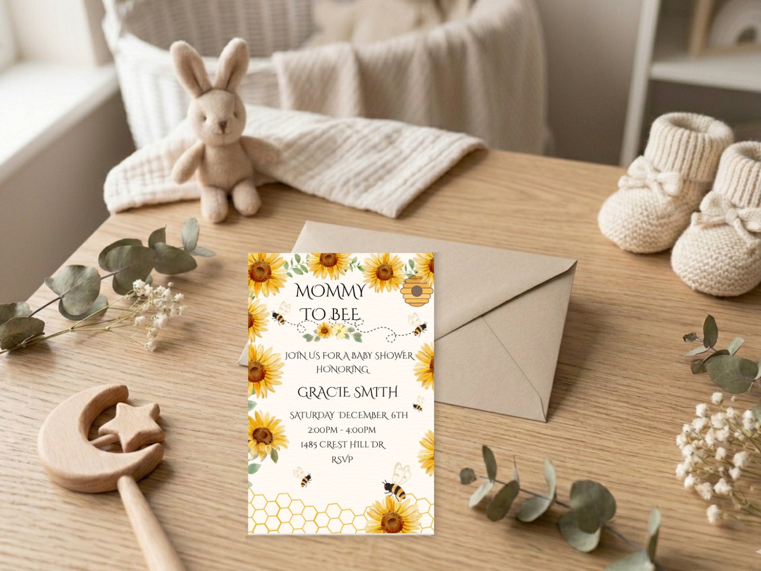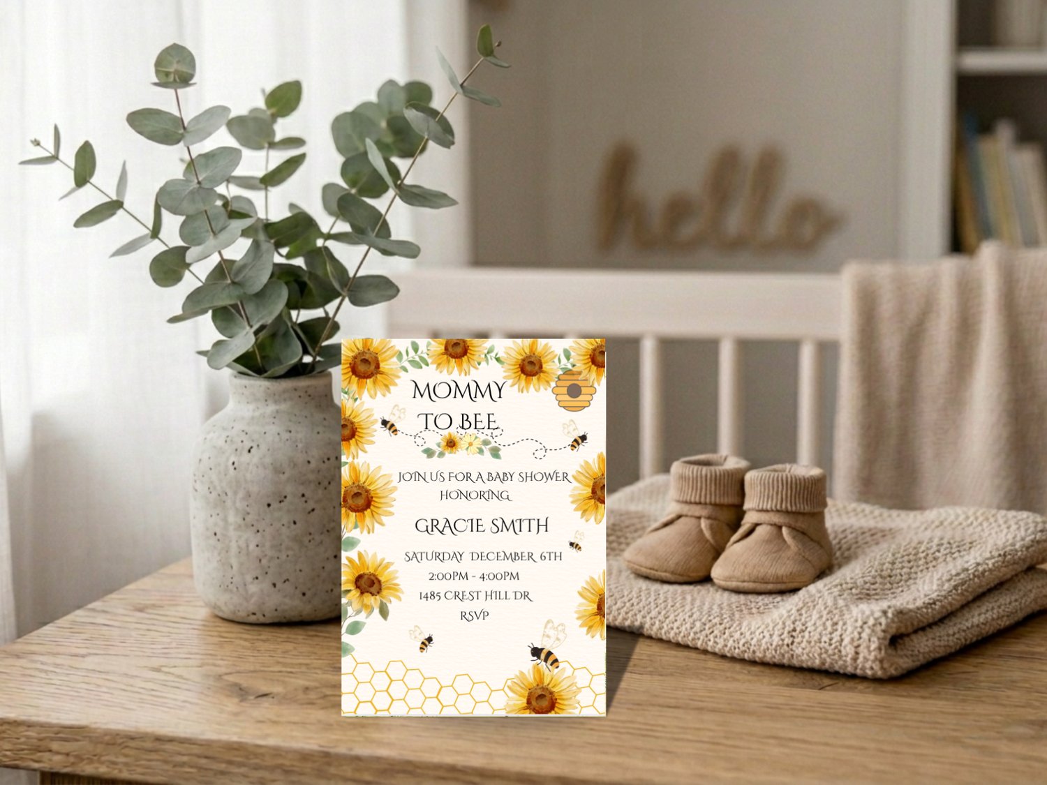 Mommy to Bee Baby Shower Invite – Canva Editable Template Preview