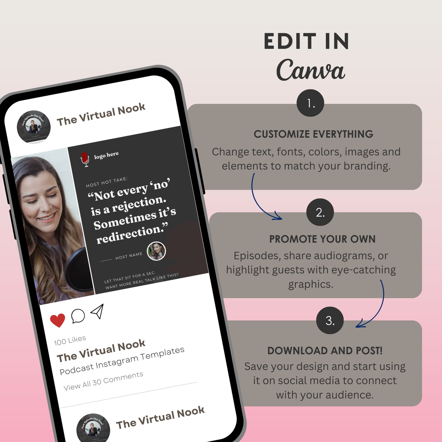 Stand out on Instagram, grow your podcast audience, and make your content look polished with these easy-to-use Canva templates.