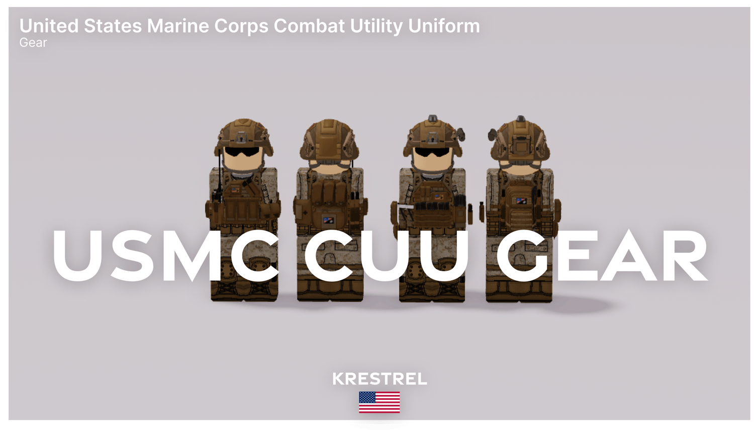 Get your players mission-ready with USMC Combat Utility Uniform Gear. This detailed gear set brings the exact equipment used by U.S. Marines in the field, perfect for adding true-to-life military realism to your game.