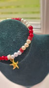 Red Sea Queen is a dreamy blend of pearlescent red beads (think Ariel's iconic hair!) and creamy ocean tones, kissed with a faux gold starfish charm that links you straight to the sea. It’s bold, it’s beautiful, and it’s giving serious underwater royalty vibes.