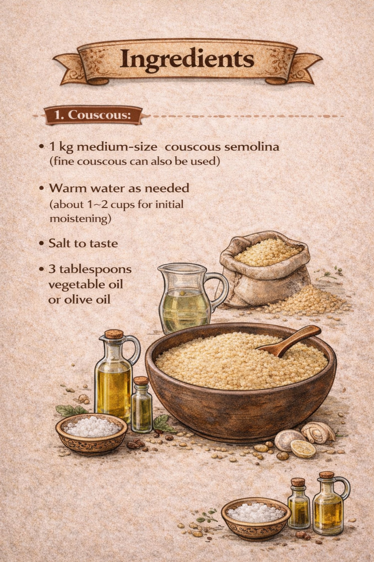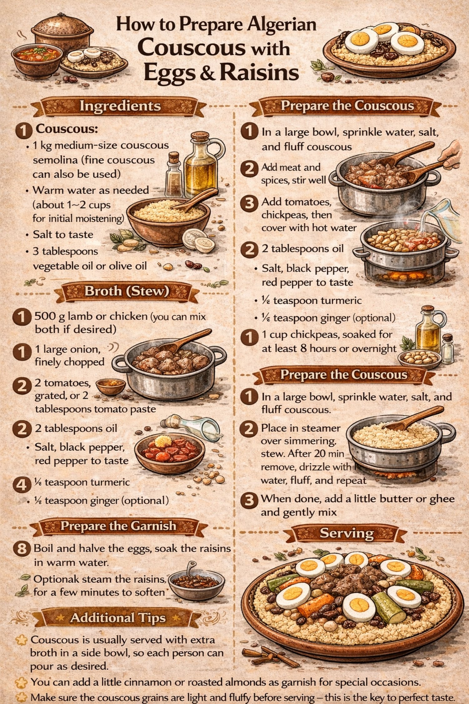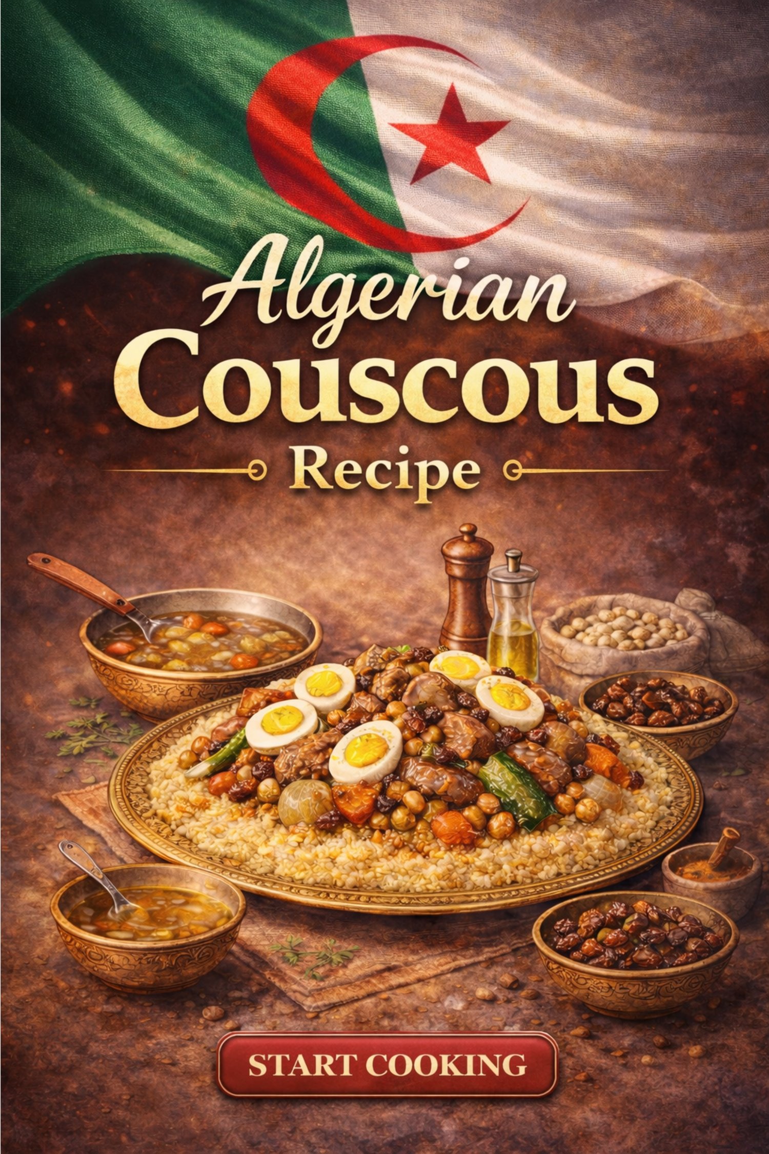 Craving the authentic taste of Algerian Couscous? With this digital PDF, you'll get a step-by-step guide to making this traditional dish at home. In just 13 pages, learn how to prepare couscous with lamb or chicken, fresh vegetables, and a rich blend of spices that bring this dish to life.