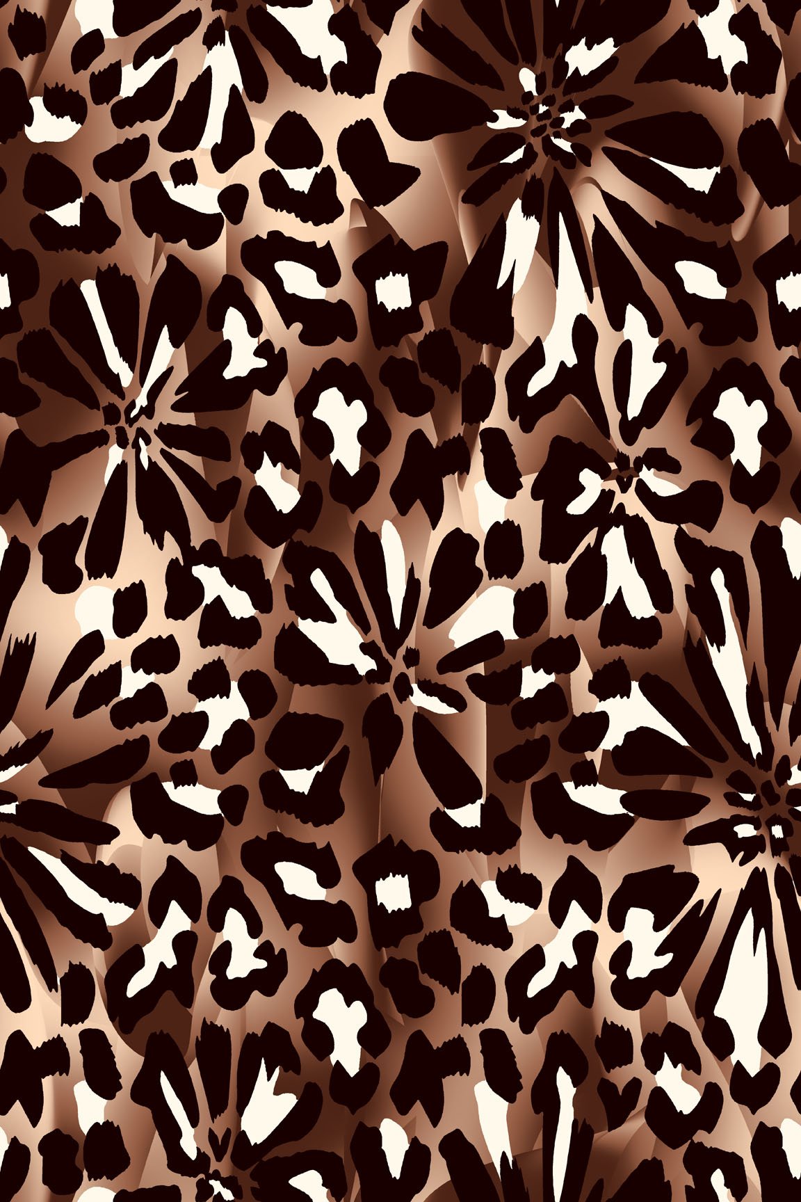 Elegant fusion of classic leopard spots and abstract floral motifs in earth tones.