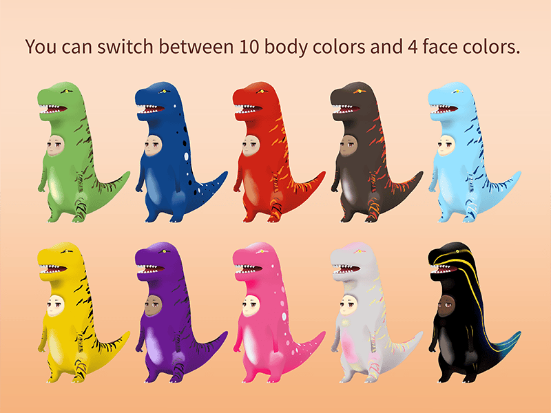 Thank you for visiting my store! This is an original 3D avatar "T-rex Takun (ティラノのたーくん)", a cute T-Rex kigurumi designed for VRChat. The avatar comes with a follow-me pet version of Takun!