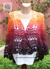 Shawl measurements "The summer of Tinerfe”: approximately 133 centimeters (52,36 inches) from corner to corner (width) and 62 centimeters (24.61 inches) high.