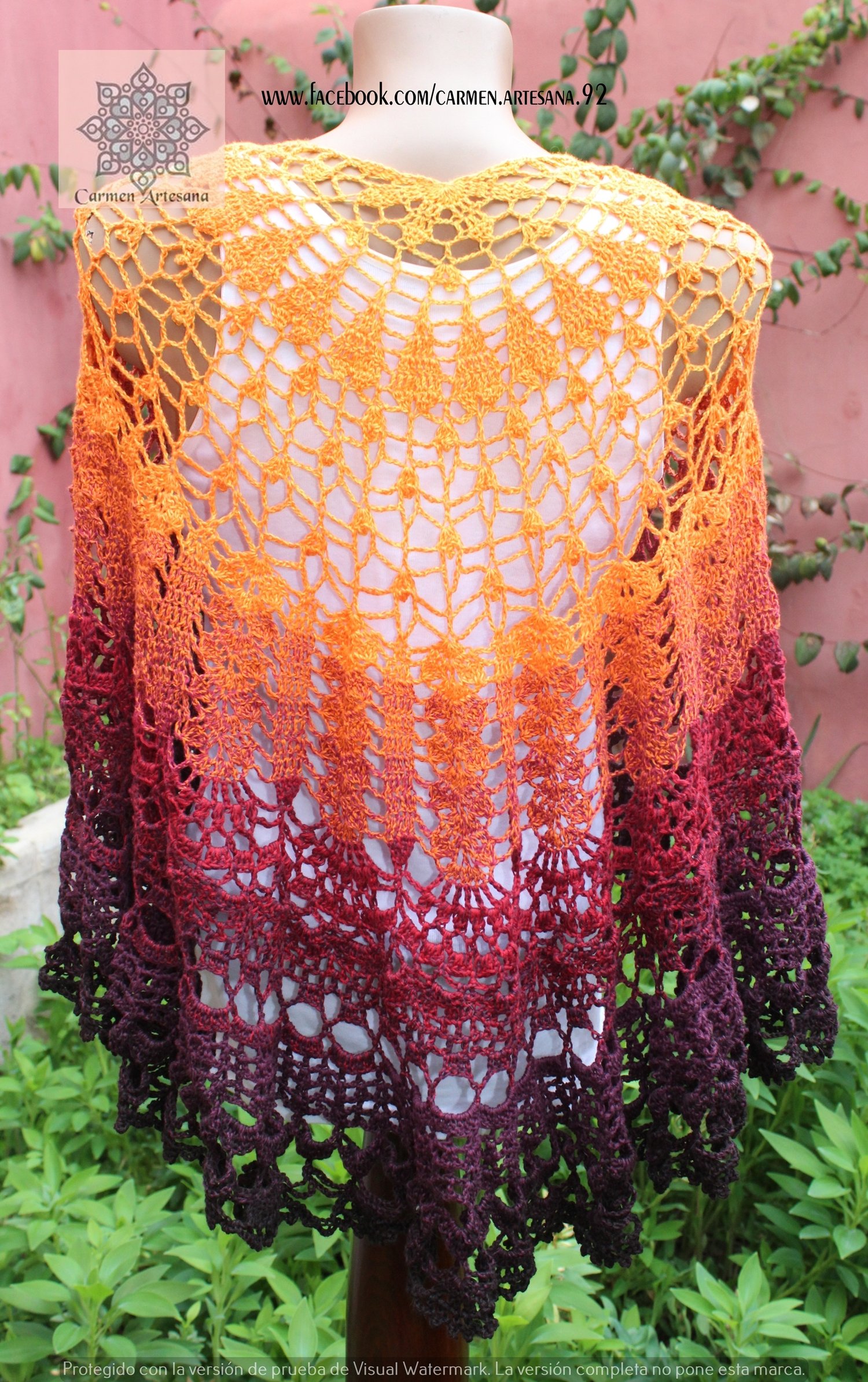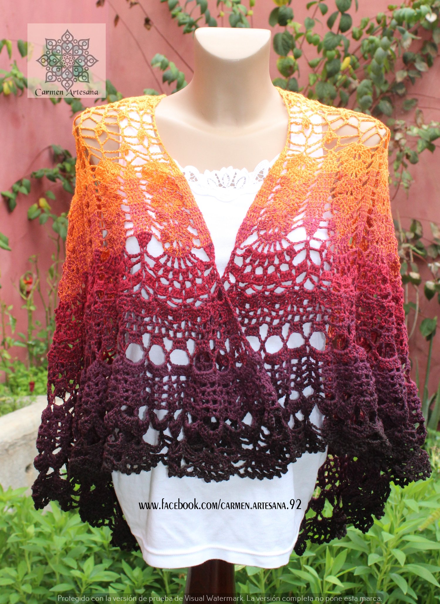 Medida y peso: Este chal tejido con el hilo y el ganchillo recomendado pesa, unos 270 gr.