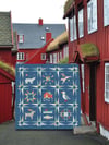 The quilt will finish at 65" square and and the reason we're starting a little later this year is because we wanted to wait for Crystal Manning's radiant Cadence collection for Moda Fabrics to arrive. The prints combine the deep blues of the Norwegian Sea, the radiant teals of the aurora borealis, the rich reds of Lofoten fishing cabins, the creamy whites of winter fur and a dash of yellow to add sparkle. They glow against an inky blue Linen Texture background, which is a delight to sew with.
