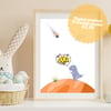 Digital Art File for Printing: Dino-OUCH! The Day Rex Dodged the Meteor. Kids funny dino.