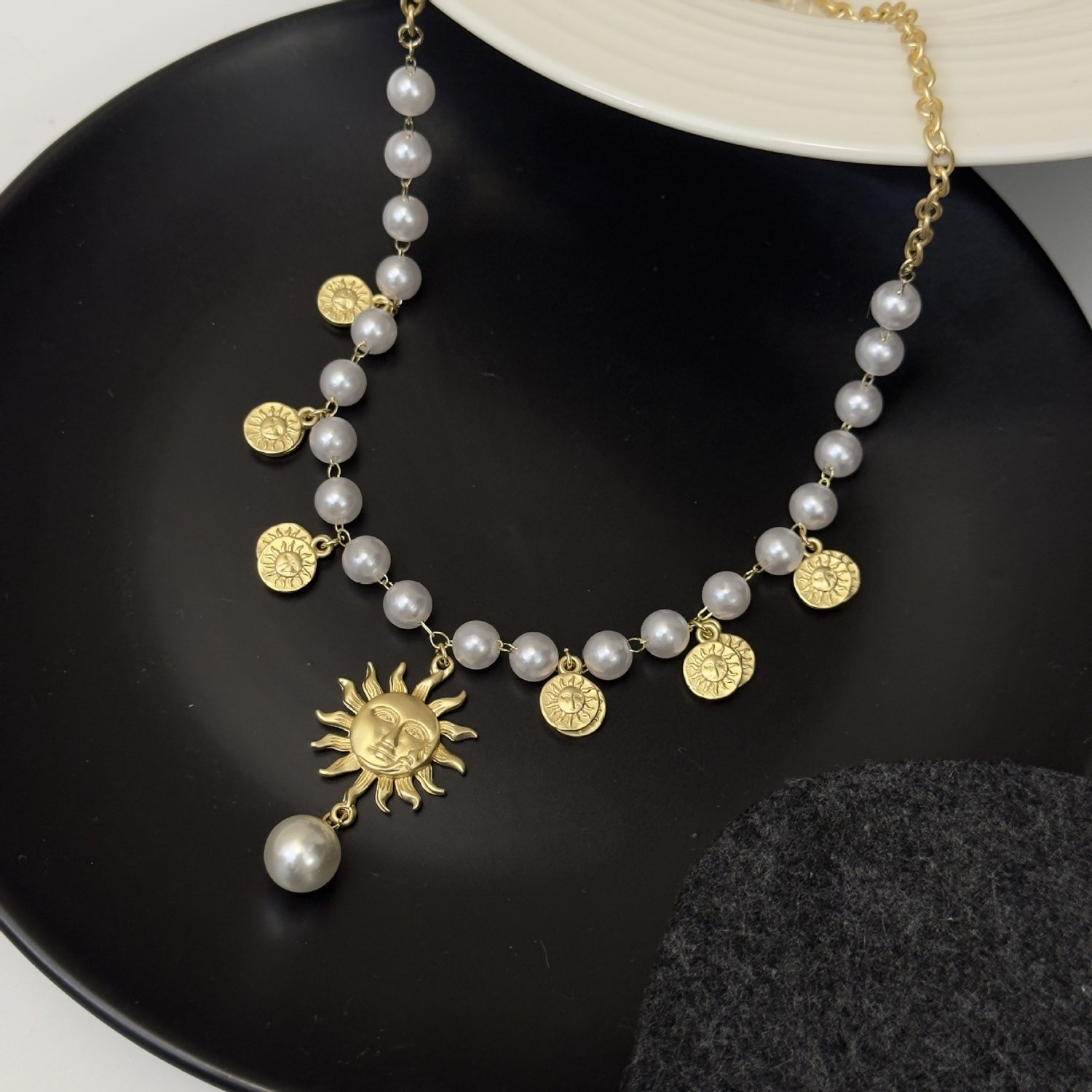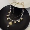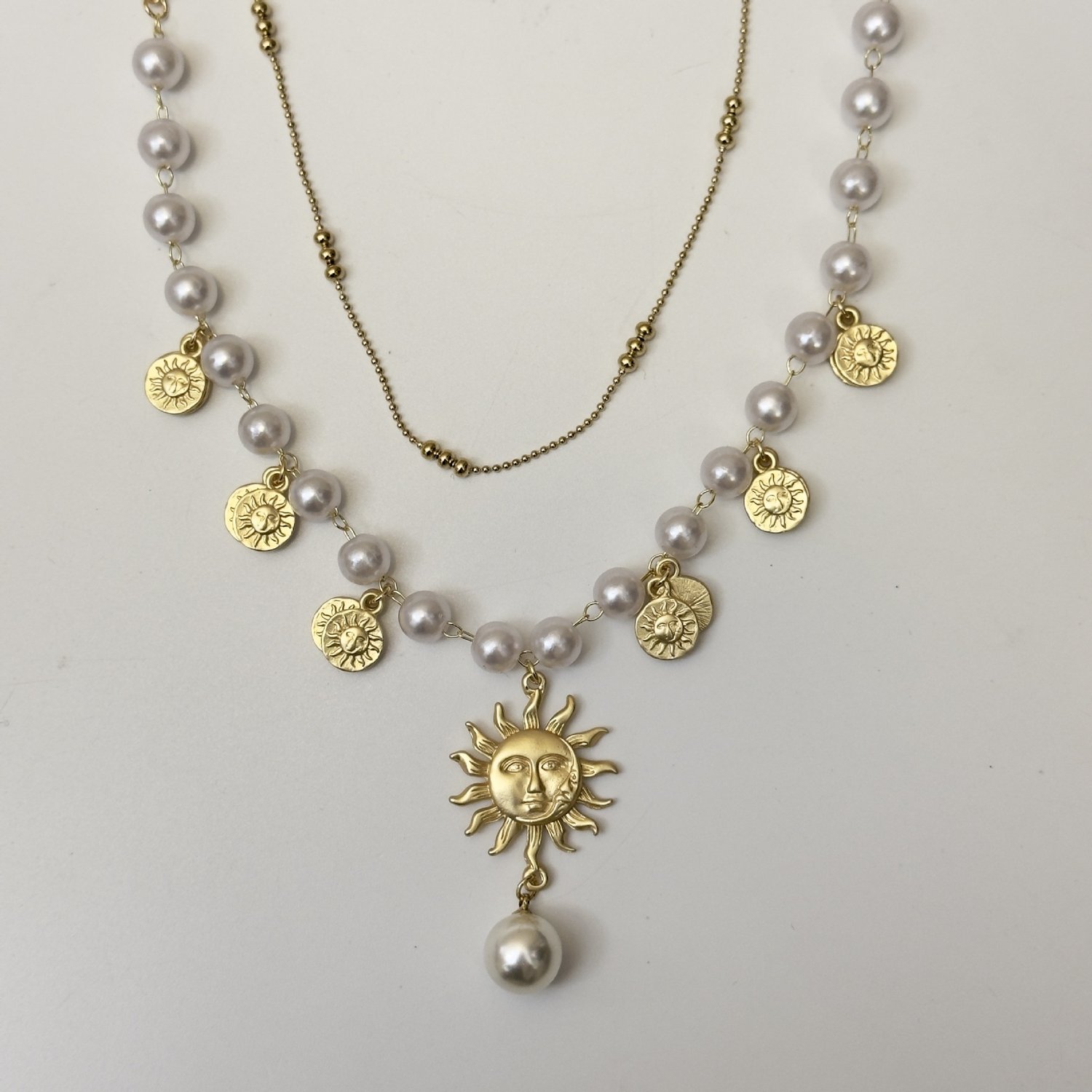 Vintage medieval court style handmade beaded sun star pearl stacking pendant necklace