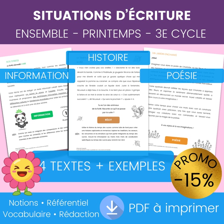 Plonge tes élèves dans un univers printanier empreint de nature, d’émotions et de réflexion grâce à cet ensemble de lectures captivantes conçu pour le 3e cycle.