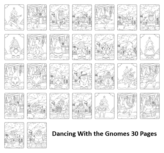 Dancing With the Gnomes Printable Christmas Coloring Book with 30 Coloring Pages