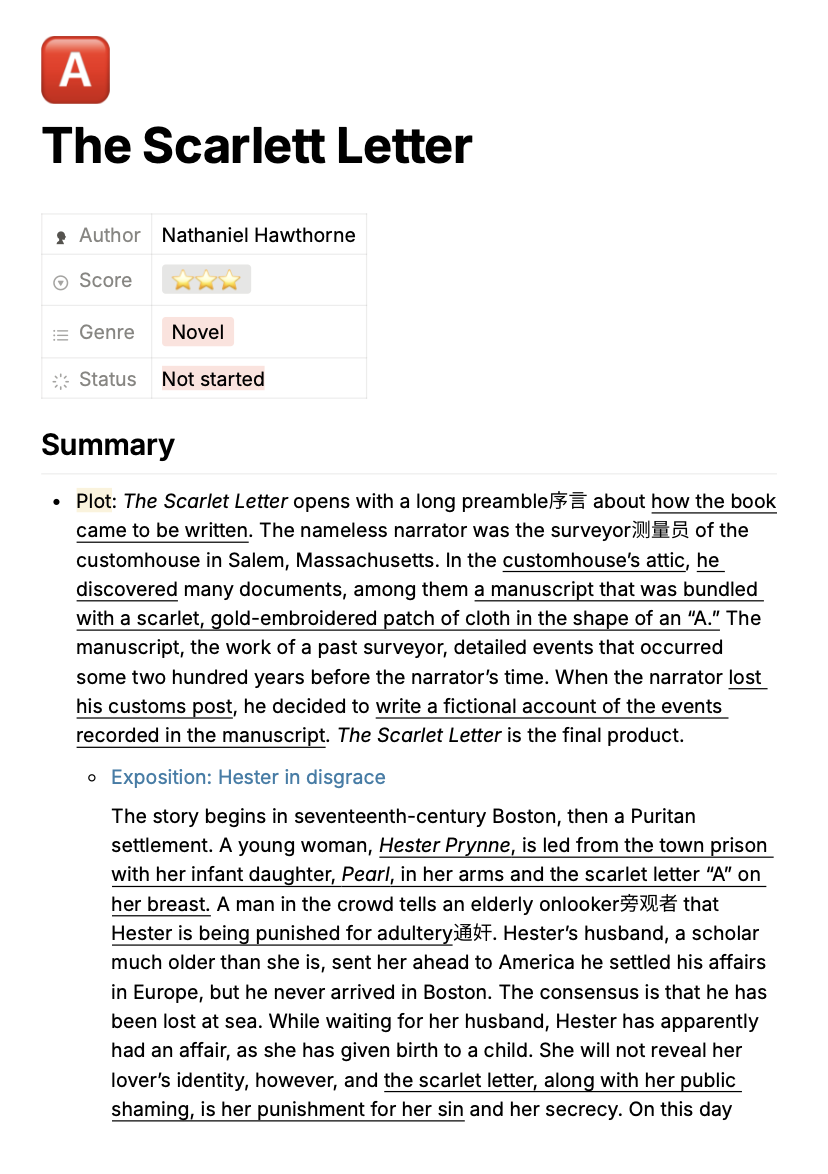 AP English Literature & Composition Book Summary - The Scarlett Letter