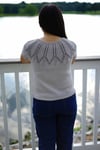 The white lotus, or hoa sen, is an iconic symbolic element in Vietnamese culture, representing purity, loyalty, optimism, and enlightenment. Hoa Sen Tee is a nod to my heritage, with bold lotus motifs worked in lace around the yoke. Lace ribs bring an architectural sensibility, framing the neck and face with striking lines, while an I-cord cast-on provides a simple, elegant piping detail at the collar. Worked from the top down in the round, the yoke depth, body length, and sleeve length are easily adjustable. The sport/light DK weight makes it a fast knit that is still cool enough for warm summer days.