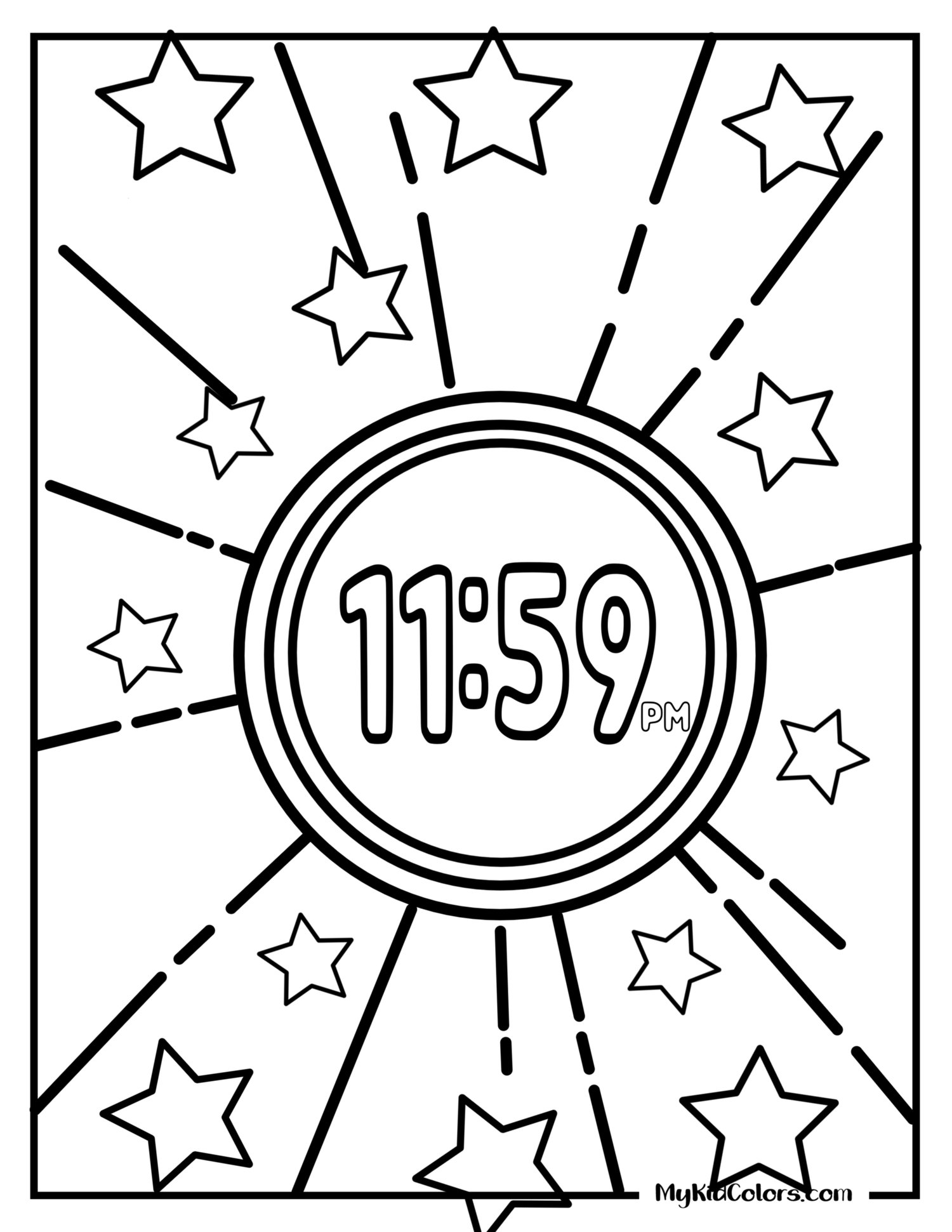 - Time & Countdown: A page featuring the iconic New Year's countdown time of "11:59 PM".
