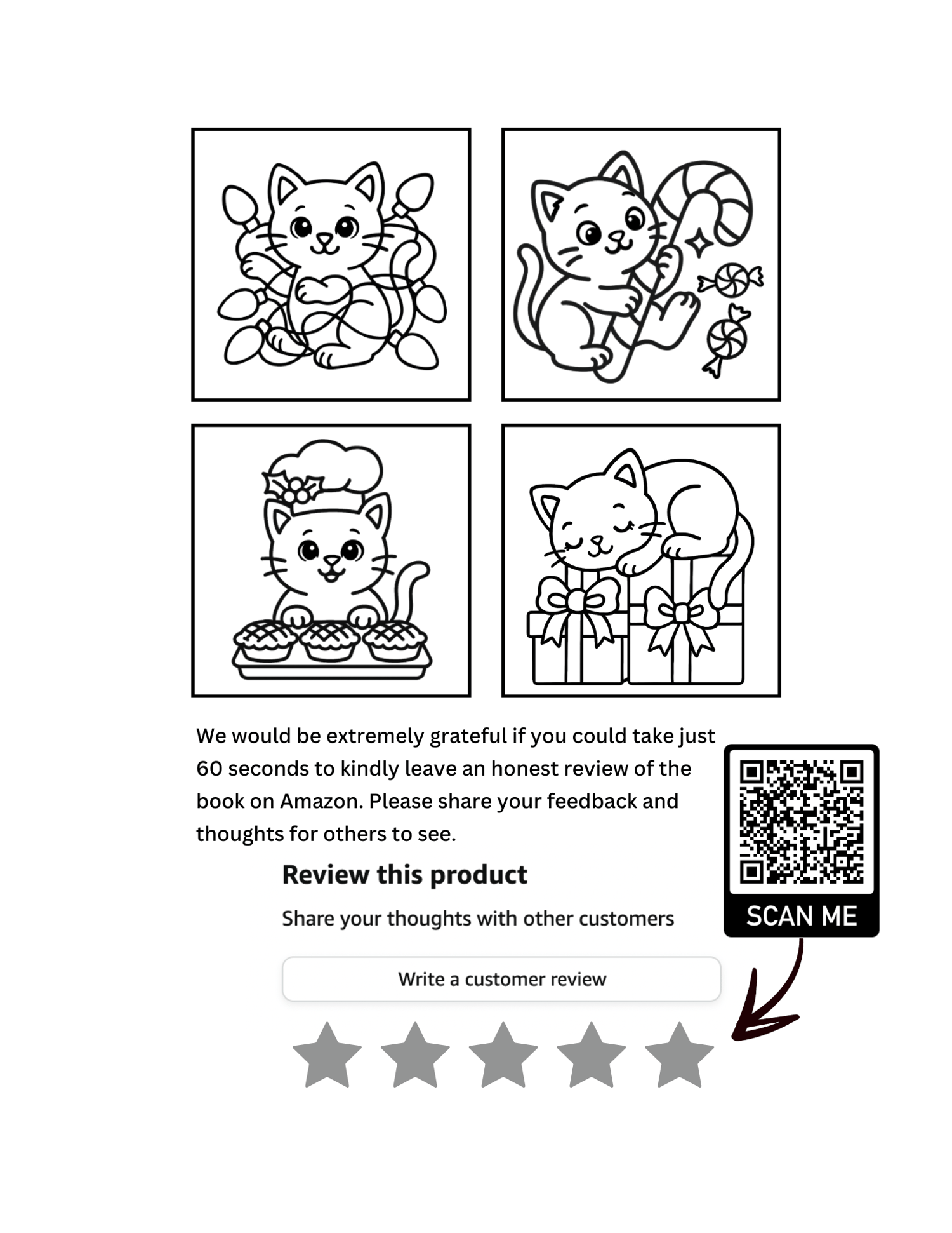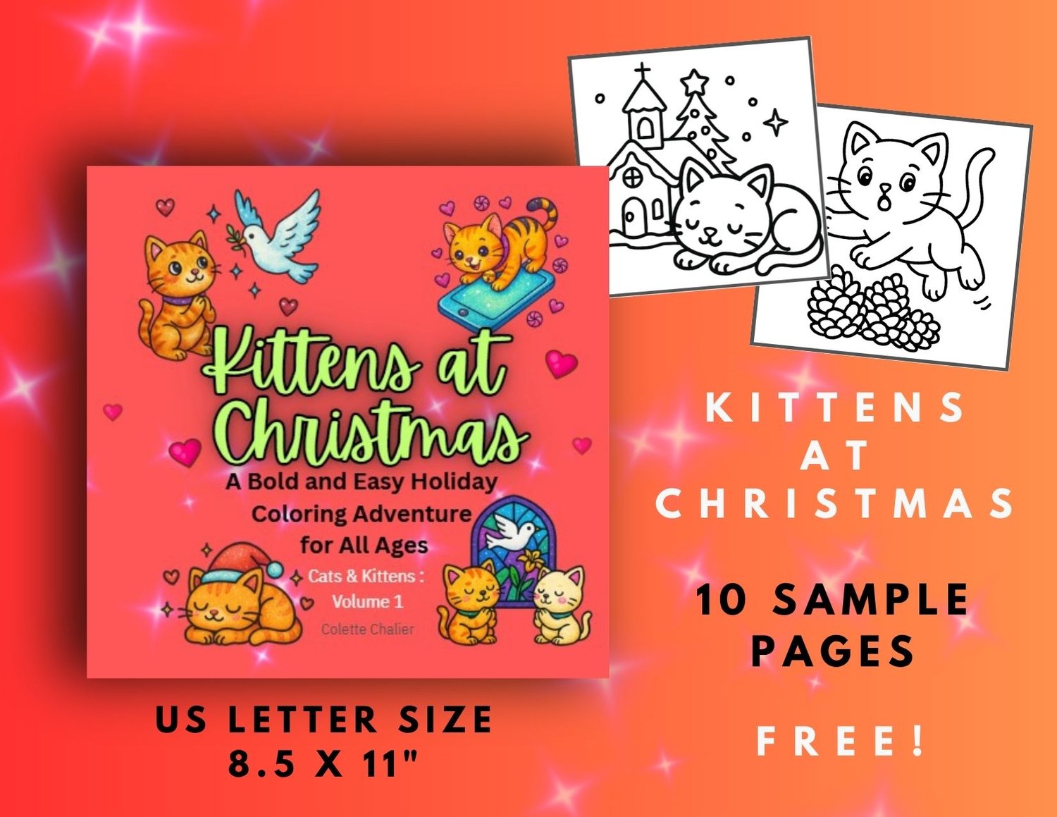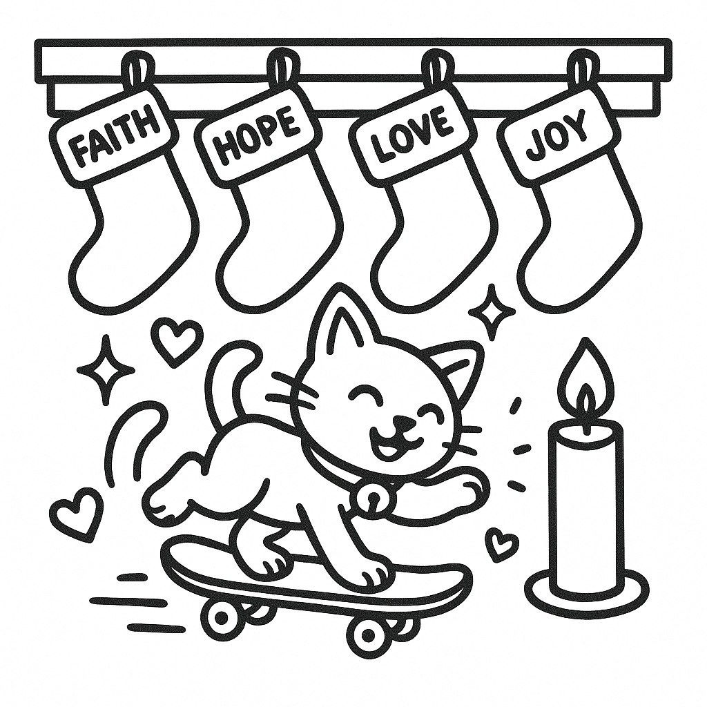 Celebrate the season with 45 cute and festive kitten illustrations! Created by a teacher, each page features bold, easy-to-color outlines—perfect for kids and fun for all ages. From kittens in stockings to playful cats with ornaments and Santa hats, this book is filled with holiday cheer and cozy charm. Includes unique Christian themed designs.