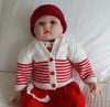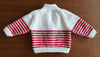 This 4ply babies Cardigan is worked in stripes to the armholes. Very easy to knit, it has raglan sleeves, 1x1 rib bands and the pattern includes both a round and V neck option.