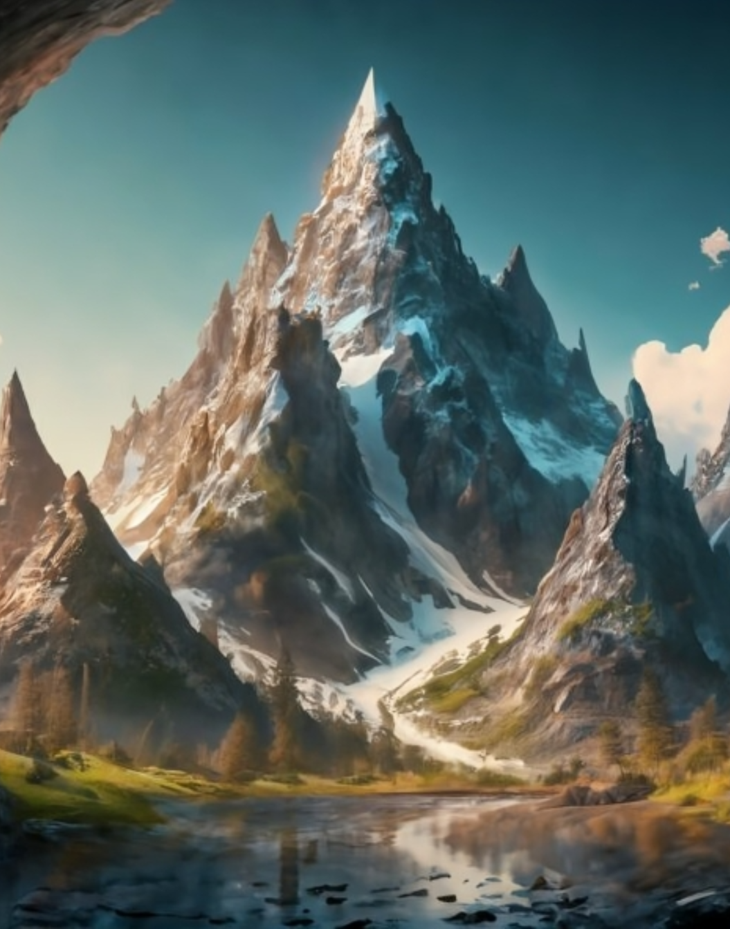 Mountain Landscape, Mountain Wall Art, Vintage Landscape, Nostalgic Nature, Cool Nature, Rustic natural Landscape, Painting Mountain Glacier, Snow Melting Mountain.