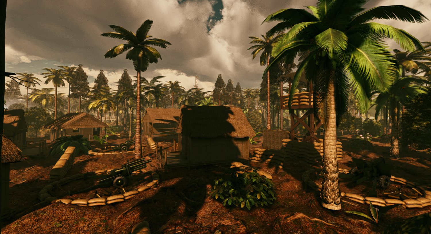 - Various military towers and weapon details in the map