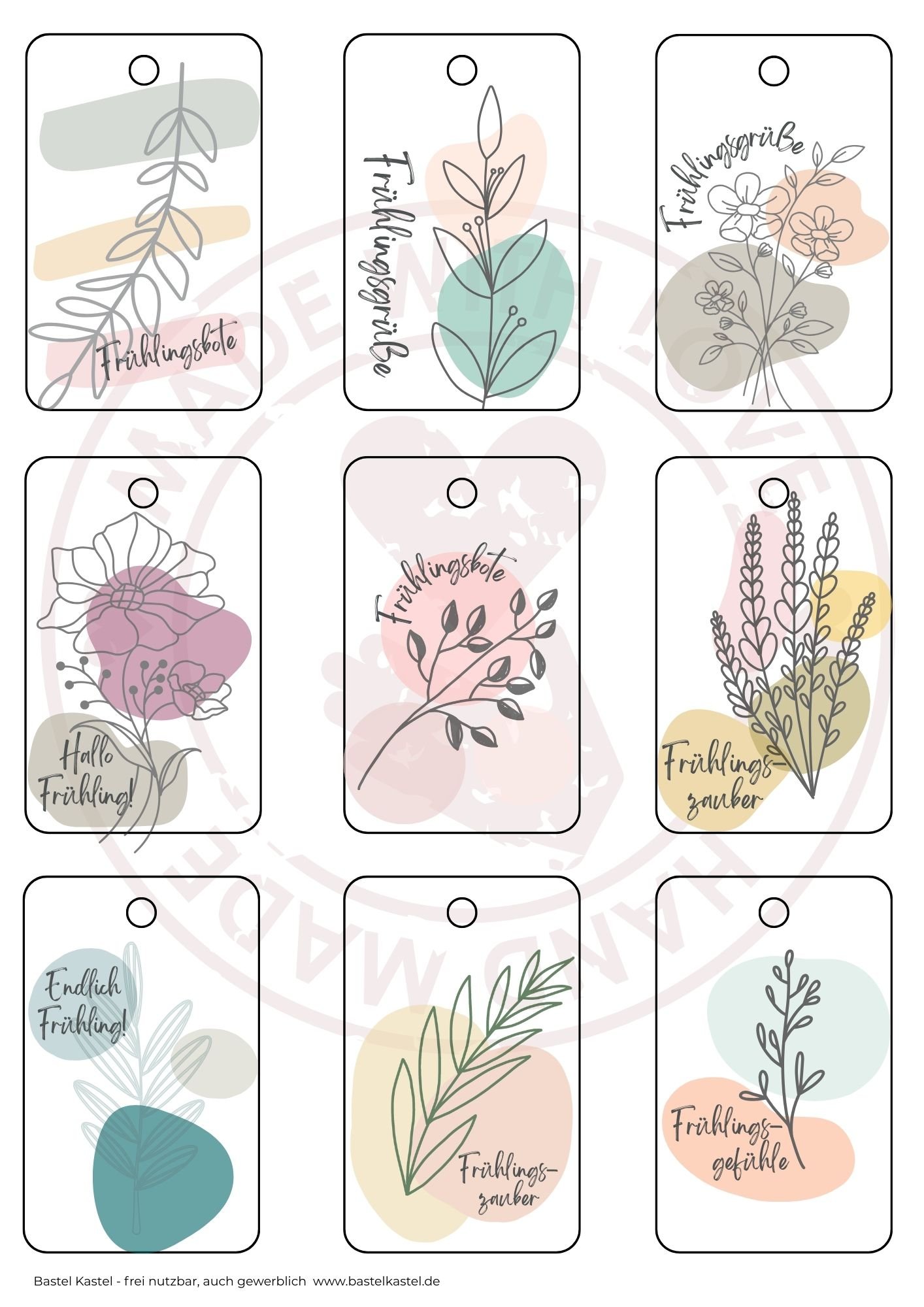 Geschenkanhänger „Frühling“ – 9 Motive zum Ausdrucken (PDF)