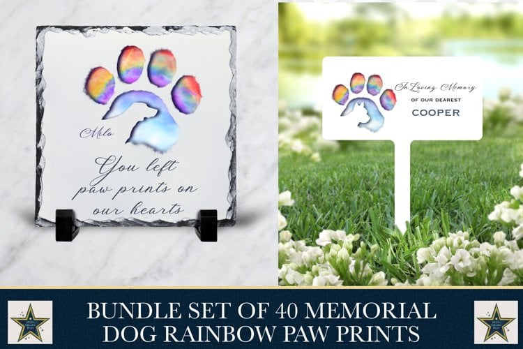 ⭐️40 Watercolour Rainbow Bridge PNG with dog breed silhouette