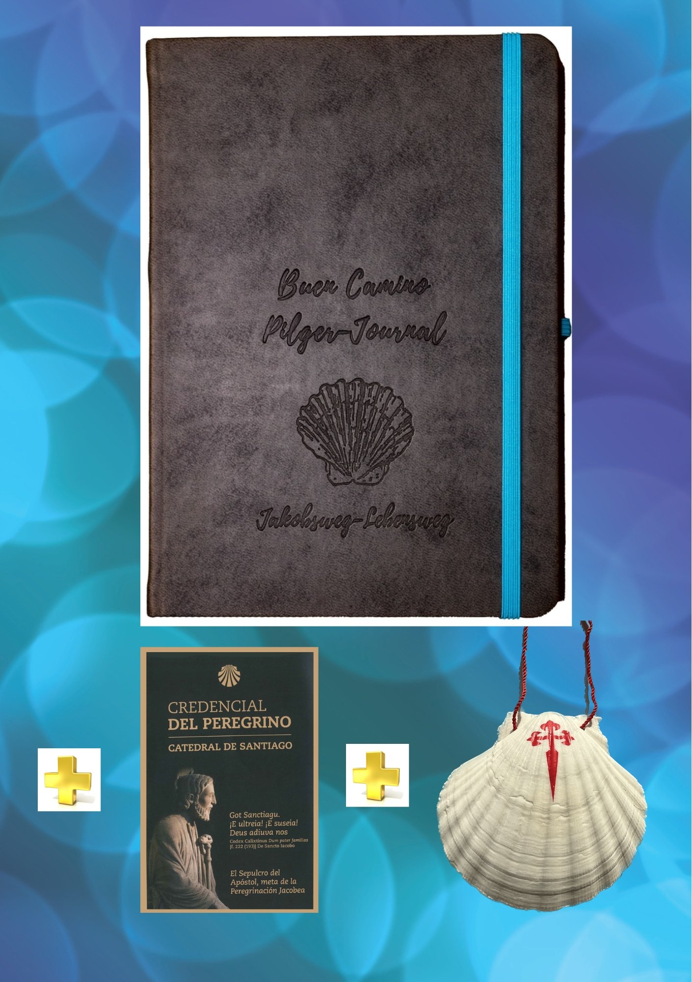 - Camino-Tagebuch – Dein persönliches Journal, um deine Reise zu dokumentieren. Es ist der perfekte Ort, um Gedanken, Erlebnisse und Gefühle festzuhalten – sowohl vor als auch während und nach dem Camino. Dein Tagebuch wird zu einem wertvollen Erinnerungsstück, das du immer wieder zur Hand nehmen kannst.