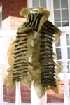 This sculptural scarf is made with yarn in two different weights: lighter-weight yarn flows in ruffles on the edges, while the heavier weight yarn is gathered in folds in the middle for extra warmth. This attention drawing scarf can be knit in similar colors or contrasting colors for an extra punch.
