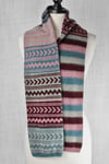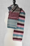 Using four colors of June Cashmere Fingering, WESTON is a tubular scarf, knit in the round, with sections of stranded colorwork and stripes, with slipped stitches sprinkled in throughout. Scarf begins and ends with ribbing and tubular cast-on/bind-off for a neat, rounded finish. WESTON is a versatile scarf that can be worn in a multitude of ways.