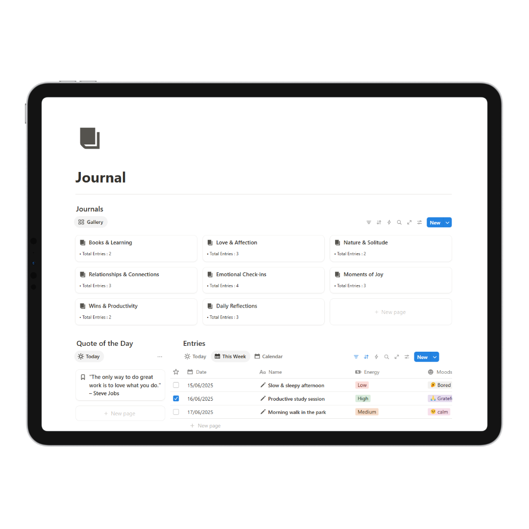 This Notion template serves a similar role as your personal diary. You can use this template to capture your thoughts and memories to reflect on past experiences and your most cherished moments, giving you a warm feeling of nostalgia.